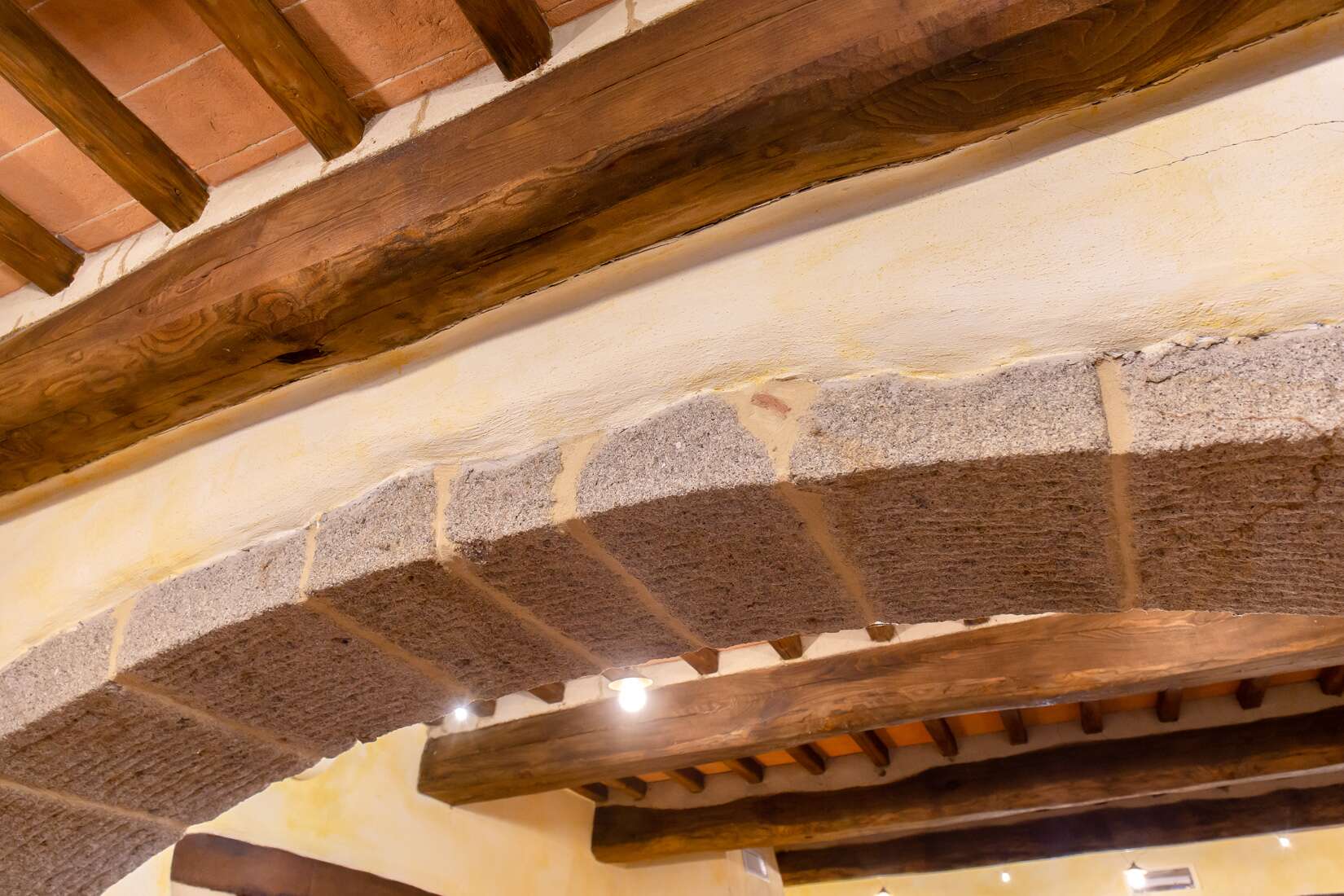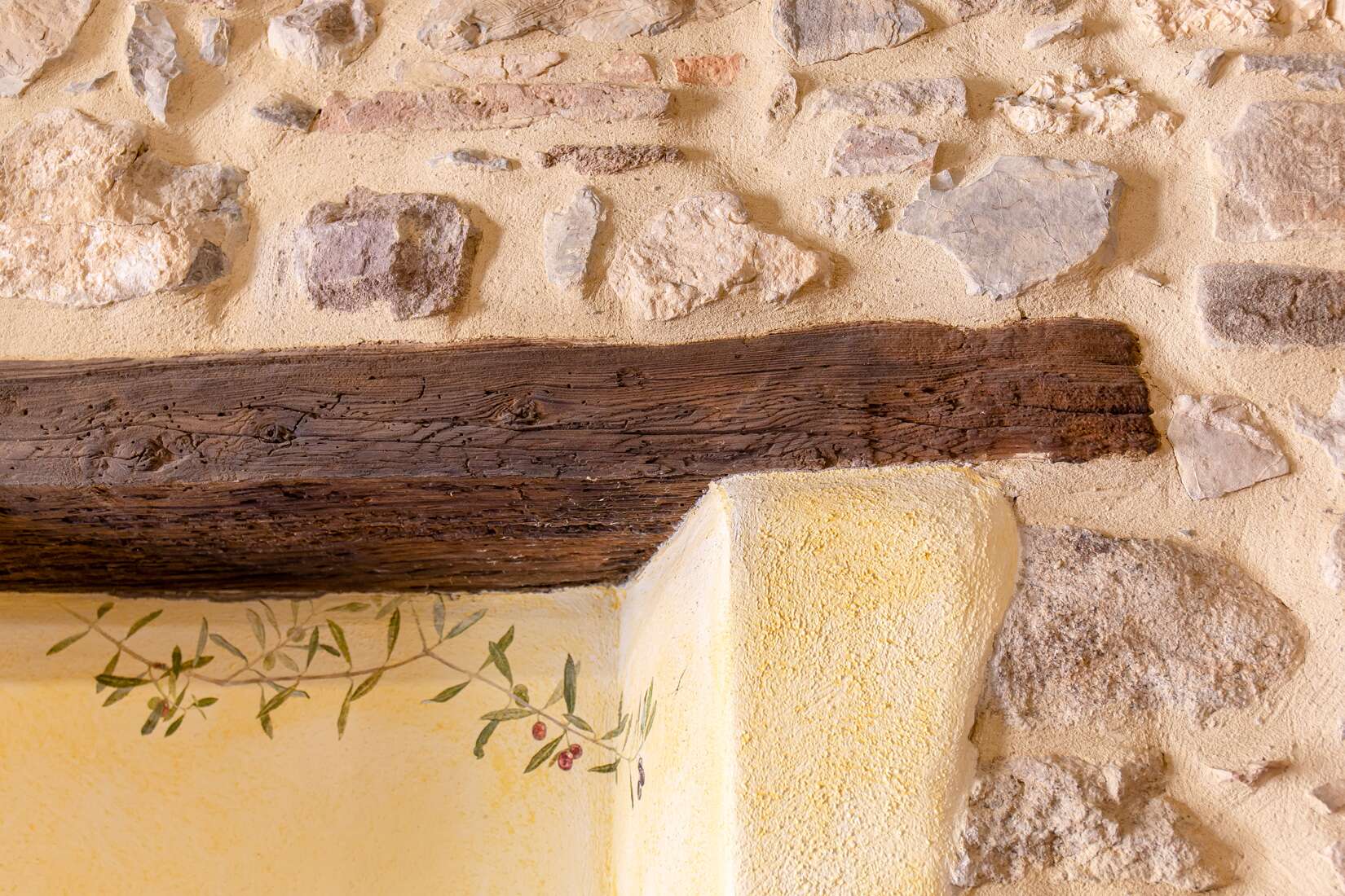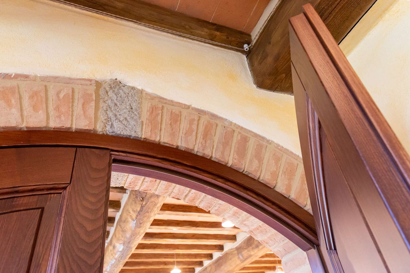 The building features a distinctive entrance and an architectural layout that emphasizes spacious and functional areas with an excellent internal arrangement. The main living areas are characterized by stone arches and brick fireplaces, charming elements that evoke the property's historic character. The openings offer an open view of the garden and surrounding countryside, ensuring natural light and a south-facing exposure. Two habitable outdoor terraces expand the usable outdoor space.
