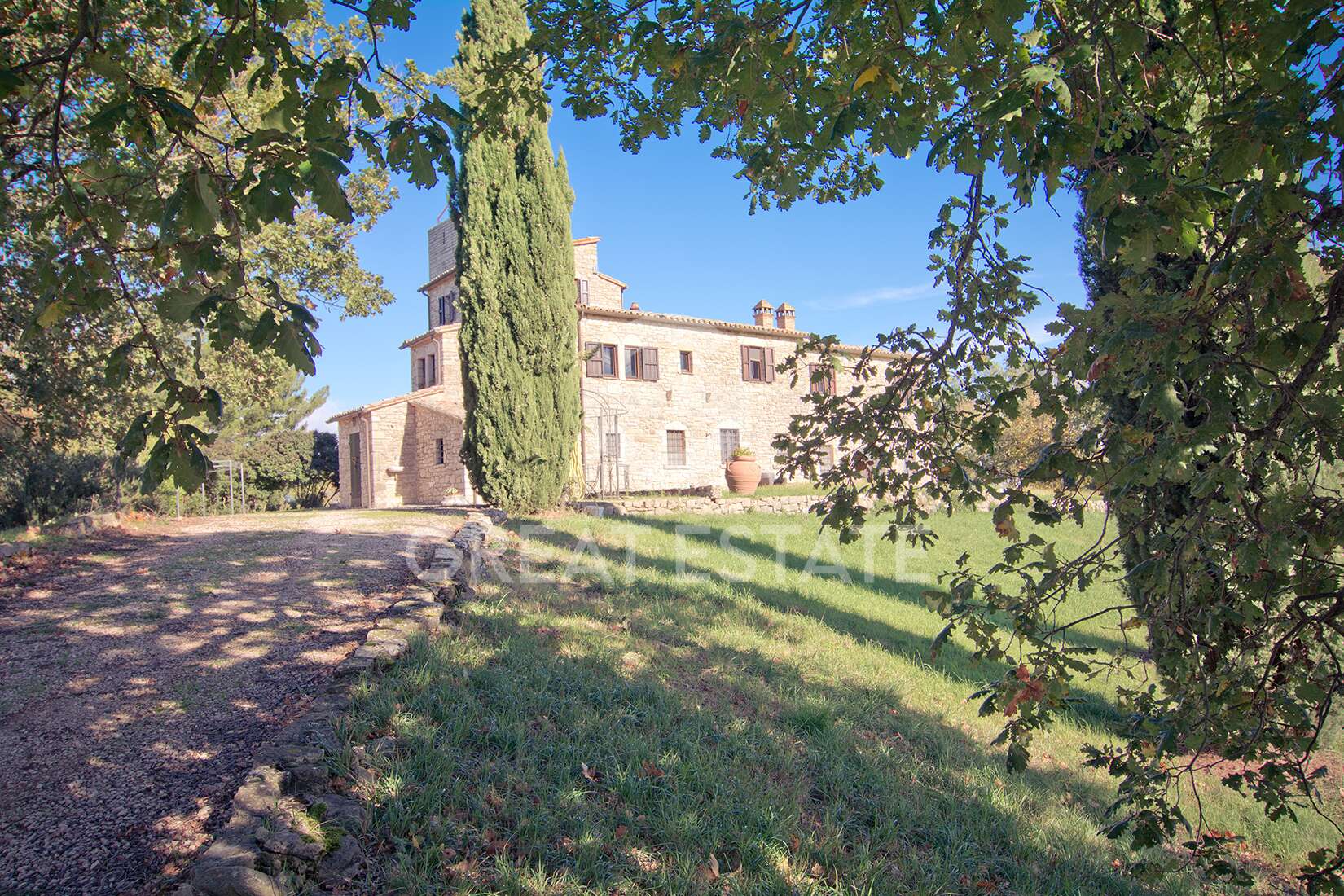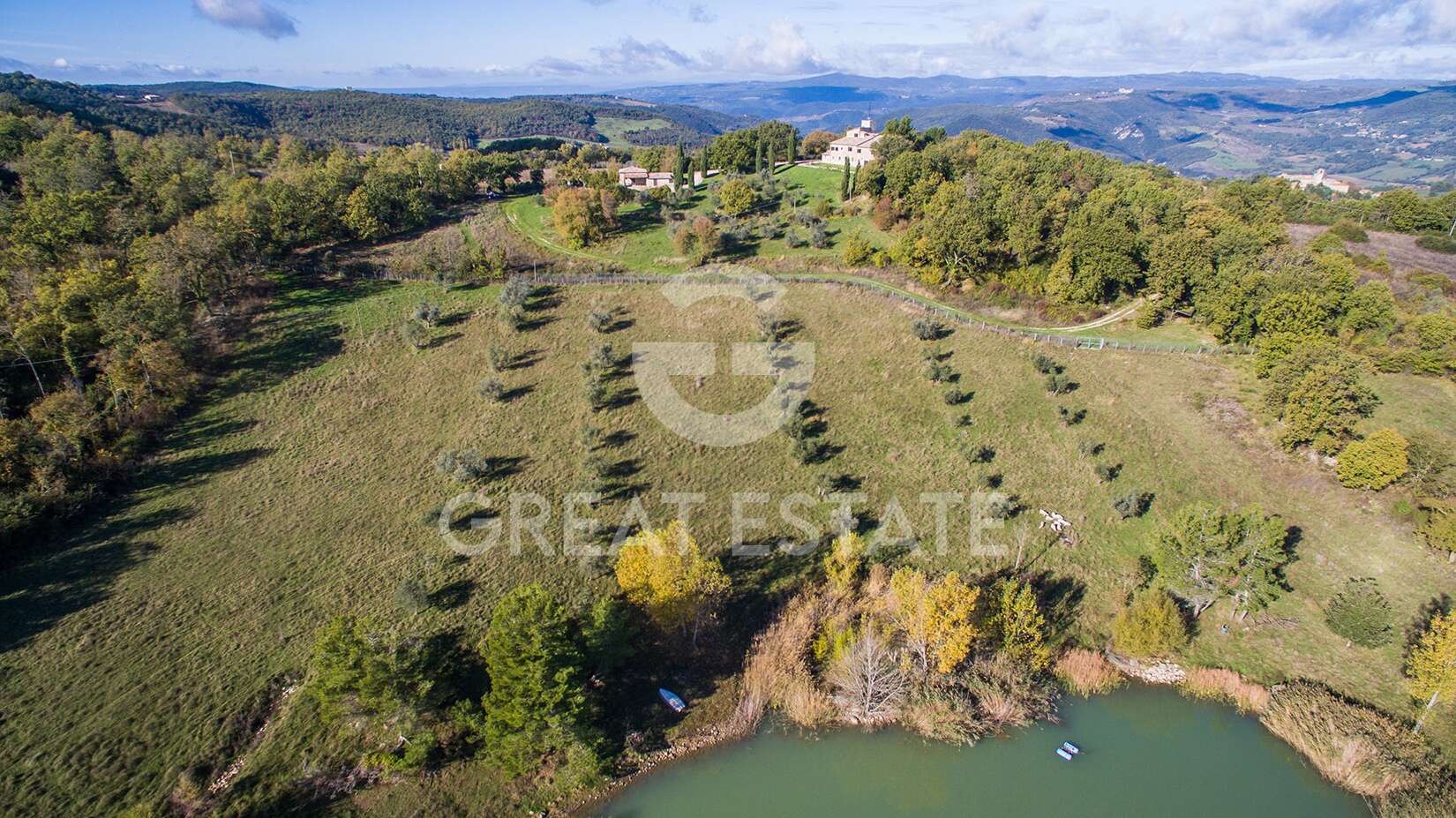 Framed by the amazing Umbrian landscape, located near Acqualoreto, in a walk distance from medieval towns like Todi and Orvieto, standing above a hill and overlooking the surrounding beautiful panorama, San Valentino owns a dominant position. The property is divided into the 400sqm main castle and the 100 sqm guesthouse. Built as Benedictine Monastery in the thirteenth century, transformed into a noble caste and currently into a very luxury and traditional farmhouse, San Valentino has been renovated maintaining all its original features: the doors, the handmade cotto pavements, the stone-on-sight walls and beams on sight ceilings. It is divided into two levels and a tower, which includes, at its ground floor, a kitchen, a dining room and two living rooms, one of which is the old church of the monastery, as the painting on the wall shows. The ground floor is completed by a scullery laundry, a bedroom, a bathroom and some utility rooms which can be reach from the outside too. At the first floor, outside reachable through a stone staircase and inside by a wood one located in the living room, is composed by a hall, two bedrooms, three bathrooms and a study. The guesthouse, currently used as the keeper home, is divided into a kitchen/dining room, two bedrooms and a bathroom. The farmhouse is surrounded by a 5 ha park which guarantees privacy and tranquillity. Thanks to its good location, it is also possible to do some interesting trips into the different hamlets near the property or even towards the Corbara, Bolsena and Trasimeno Lakes.