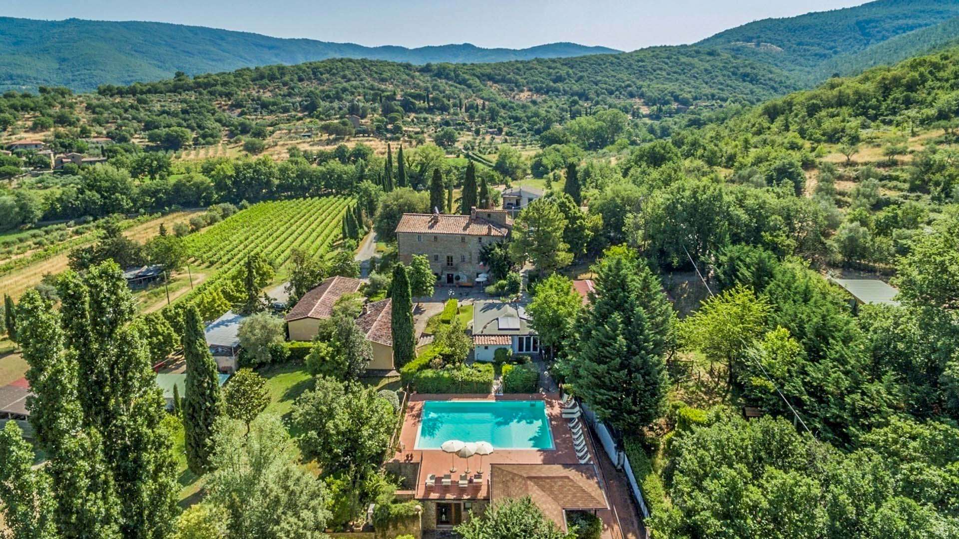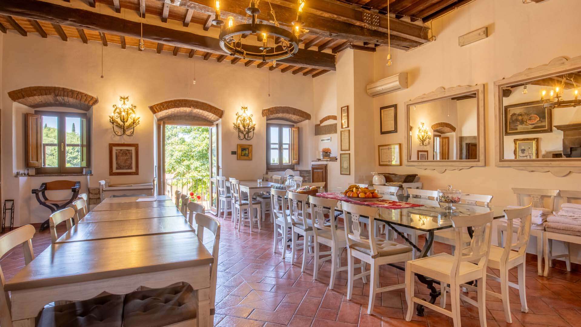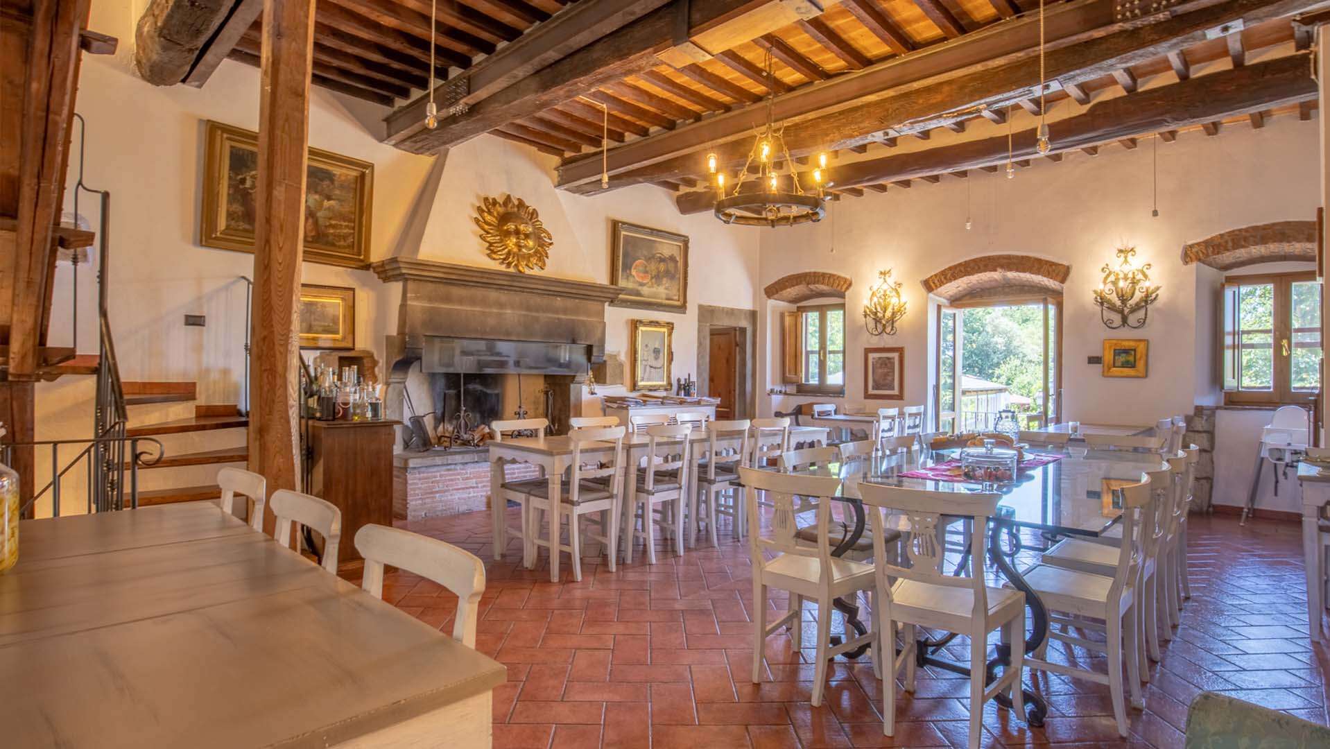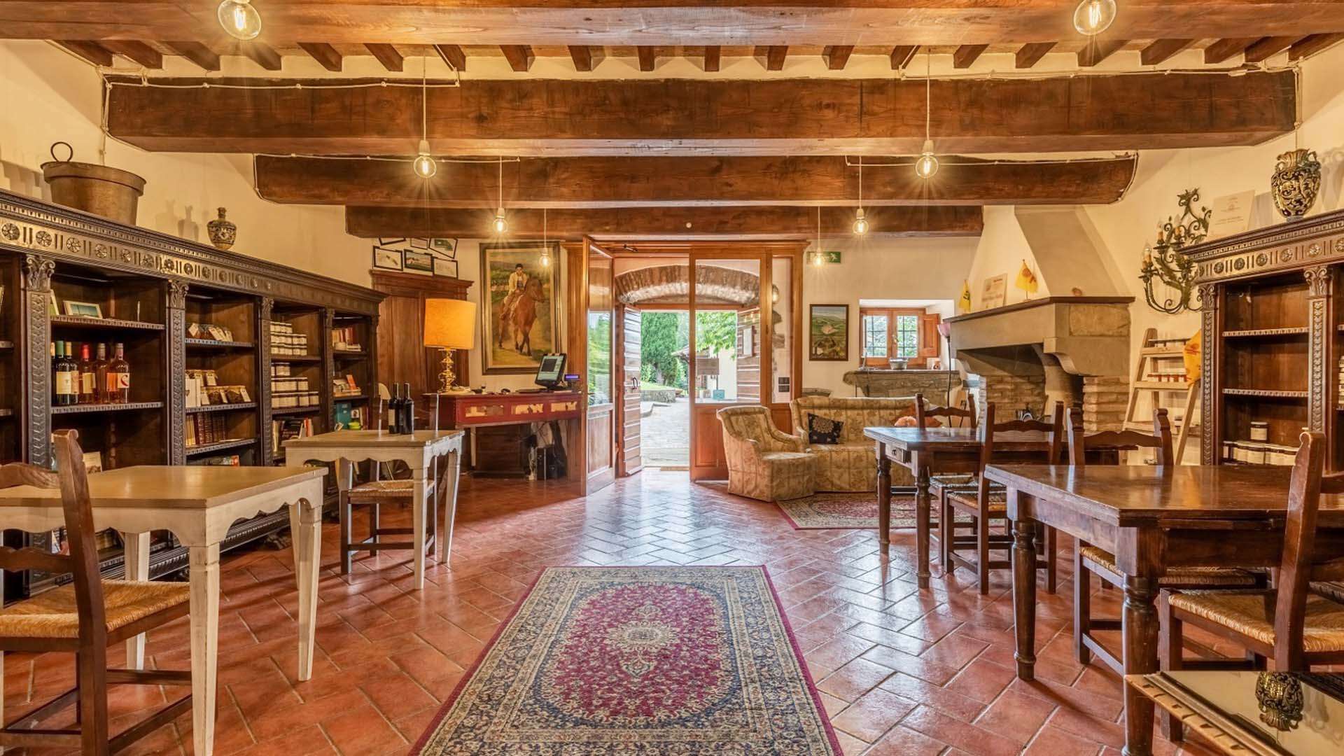 The estate is set in its 12 hectares of land, with 4 hectares cultivated as olive groves producing exquisite Tuscan olive oil and 1.6 hectares of vineyard in full production of the company’s prestigious red wine. Outside, guests can enjoy a panoramic swimming pool as well as a covered pool with jacuzzi. The grounds include a children’s playground, a well-equipped workout park featuring a fitness trail with 16 stations, and a helipad. The property is further enhanced by expansive terraces and pergolas draped with blooming wisteria, alongside a grand outdoor restaurant pergola offering unique views over the surrounding countryside.