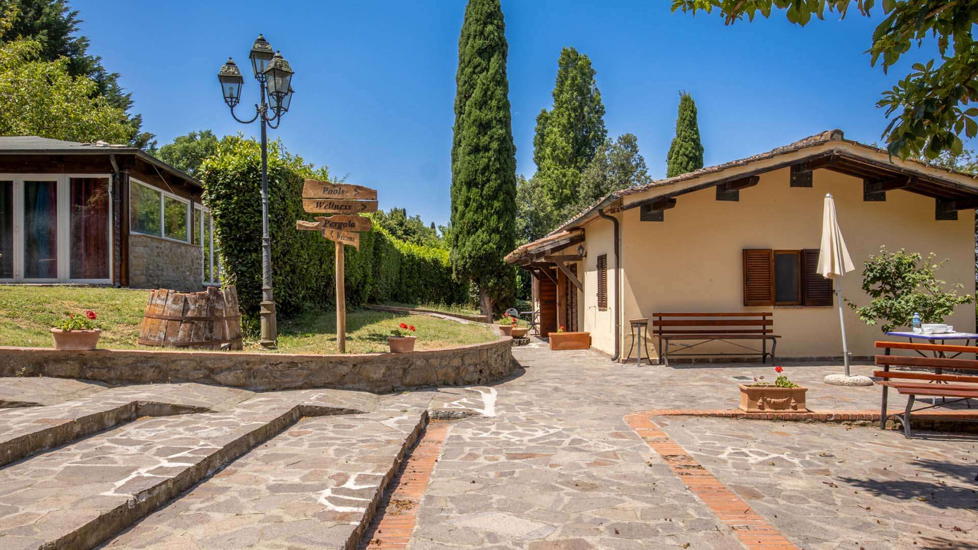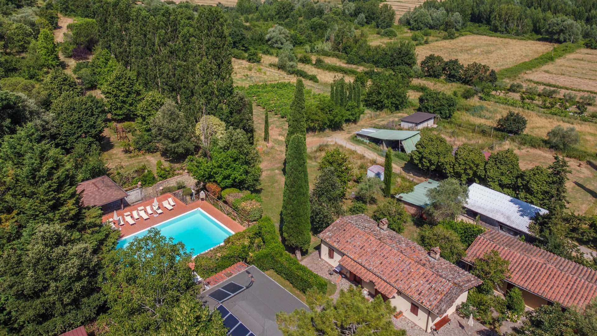 The property is located on the border between Umbria and Tuscany, just a few kilometers from Cetona and Castiglione del Lago. Nestled among the hills, cultivated fields and olive groves with very suggestive views, the property can be reached via 1.5 km of perfectly maintained asphalted road. The nearest town with services is 3 km away. Located halfway between Rome (180 km) and Florence (100 km) with the great advantage of being easily reachable from the A1 (E35) Florence - Rome motorway.