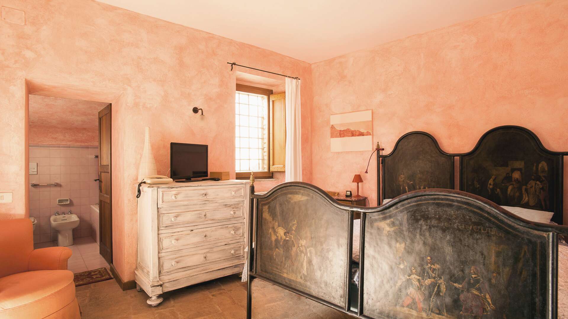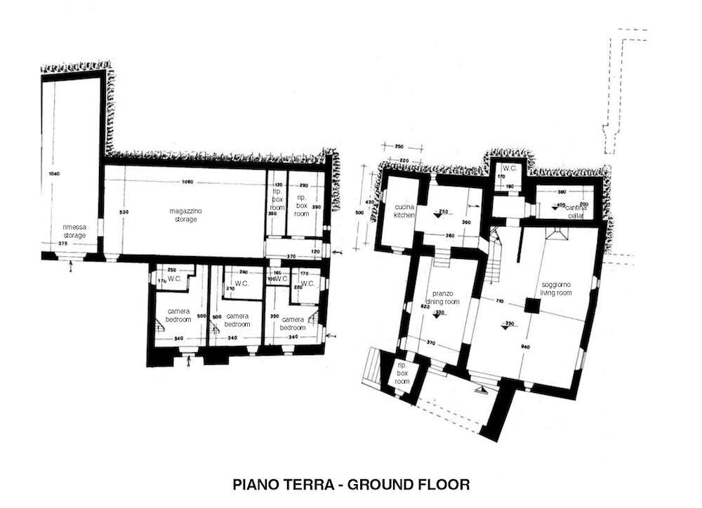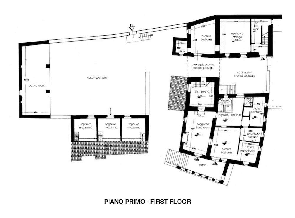 The property belongs to the Italian film director Michelangelo Antonioni and includes a main building that develops on a living area of approximately 470 sqm, divided over three levels: On the ground floor, there is a twin living room with a kitchen. On the first floor, there are three bedrooms, two bathrooms, a living room, and storage rooms. Finally, the second floor features two bedrooms, two bathrooms, a kitchen, and a walk-in closet. Adjacent to the main building there is an annex with 130 sqm. It houses three bedrooms, three bathrooms, a storage room, and a garage. The property is completed by an internal courtyard of about 200 sqm, a park/garden of about 8,300 sqm including approximately 150 olive trees, and a swimming pool (14 m x 6 m).