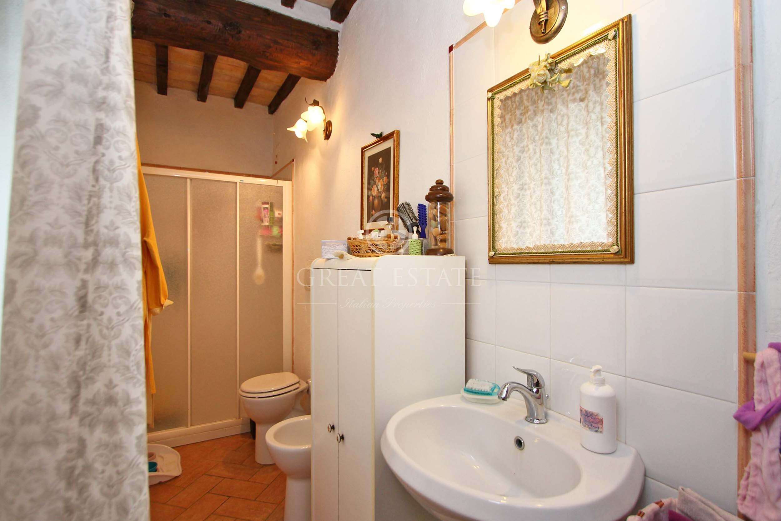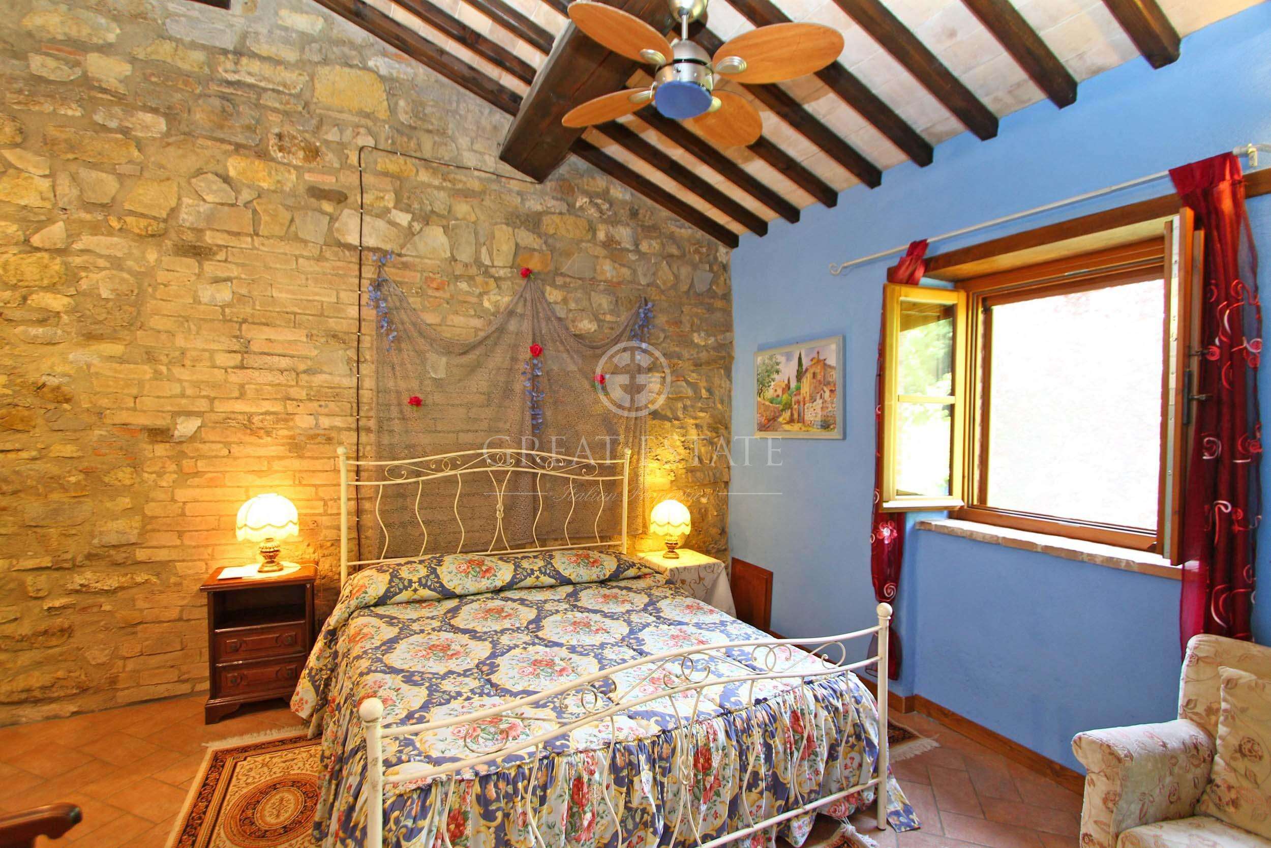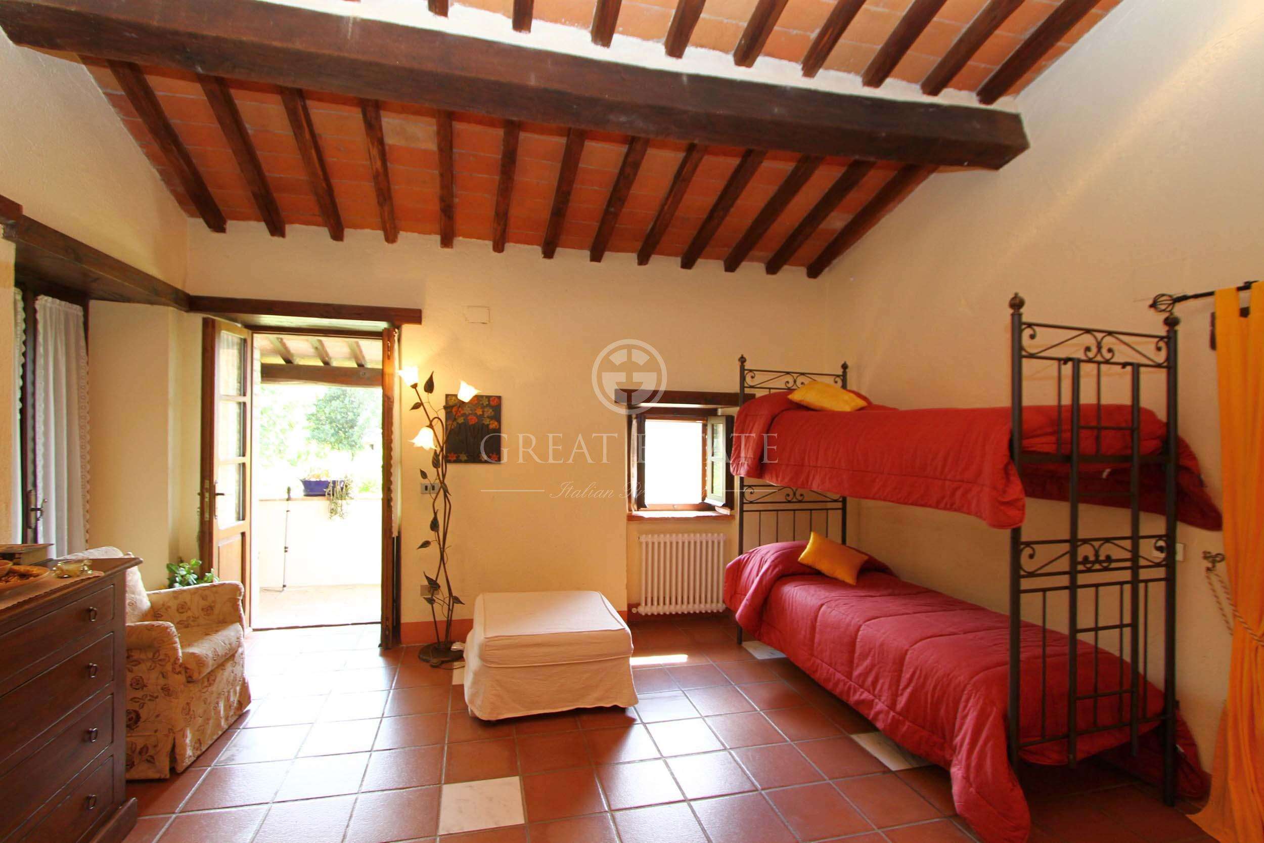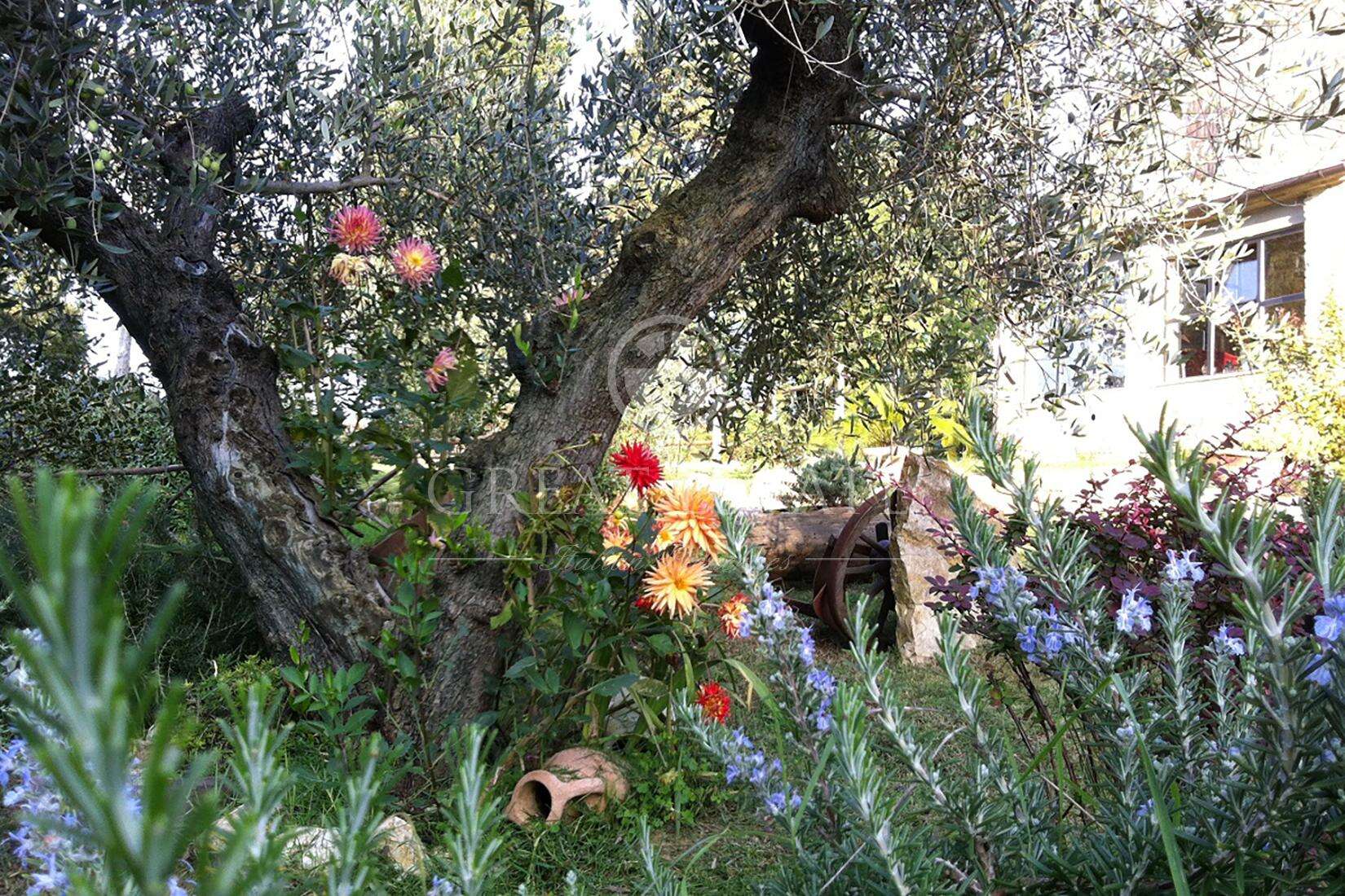 The farmhouse is made up of two levels. The ground floor, formerly used as an old stable, has been transformed into a beautiful living space consisting of a living room with wood stove, wood fireplace, wooden beams and terracotta floors, a very bright veranda with large glass windows, a dining room, a spacious kitchen with island, a study used as a bedroom, a service bathroom, a technical room, a pantry, a bathroom with shower, and a laundry room. The second floor is accessed via an internal English-style staircase, or from the outside with a restored ancient staircase, the bedroom with a larger four-poster bed (once used as a kitchen with a large fireplace), three bedrooms with en suite-bathrooms, a double bedroom, and two bathrooms with shower. During the restoration, the original wooden beams and terracotta tiles were kept. The garden with centuries-old olive trees and other ornamental plants, completely fenced, a swimming pool with a salt and chlorine system, a masonry oven with bbq, a shelter in which a photovoltaic system has been installed that develops 5.5kw.