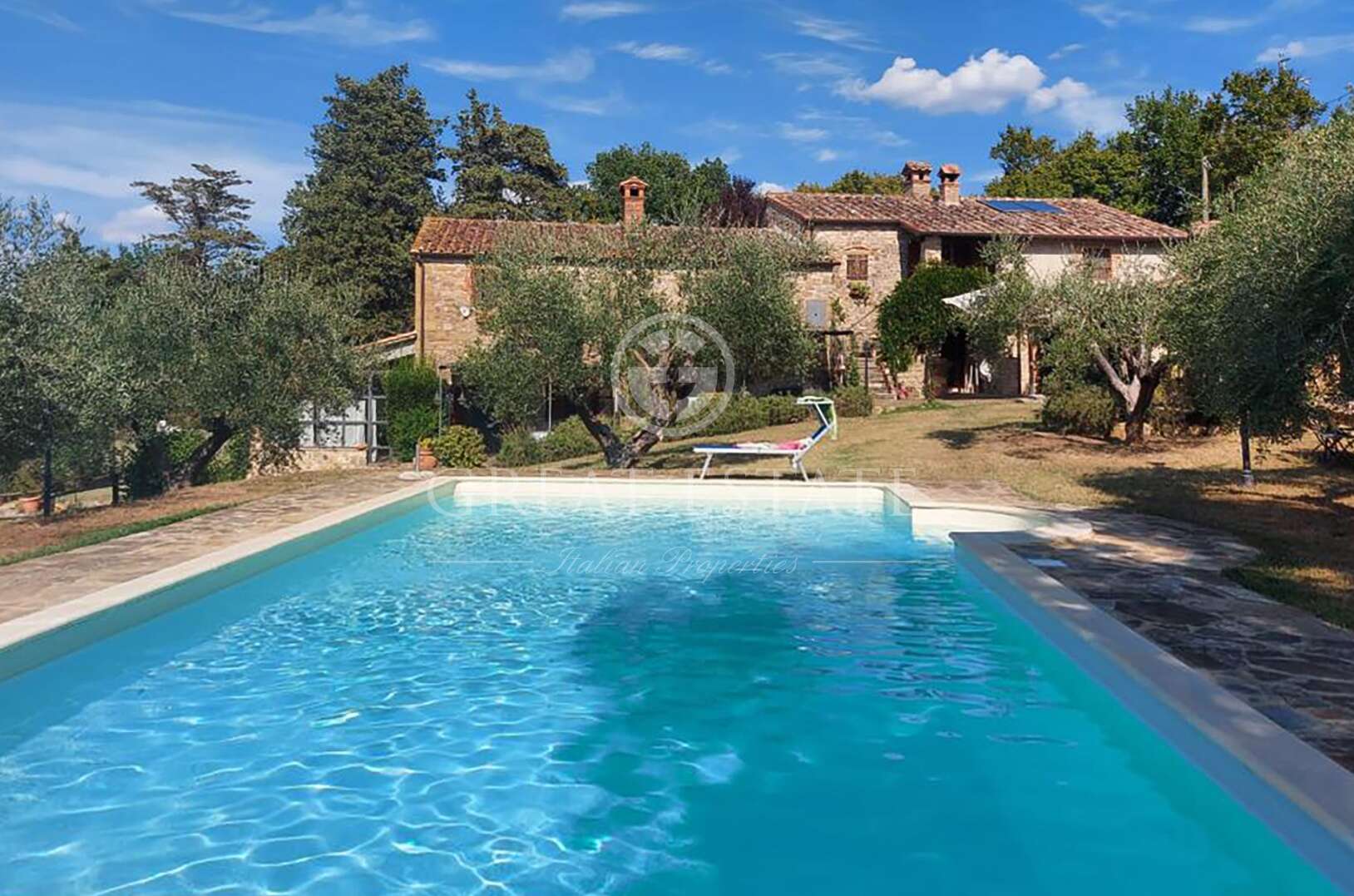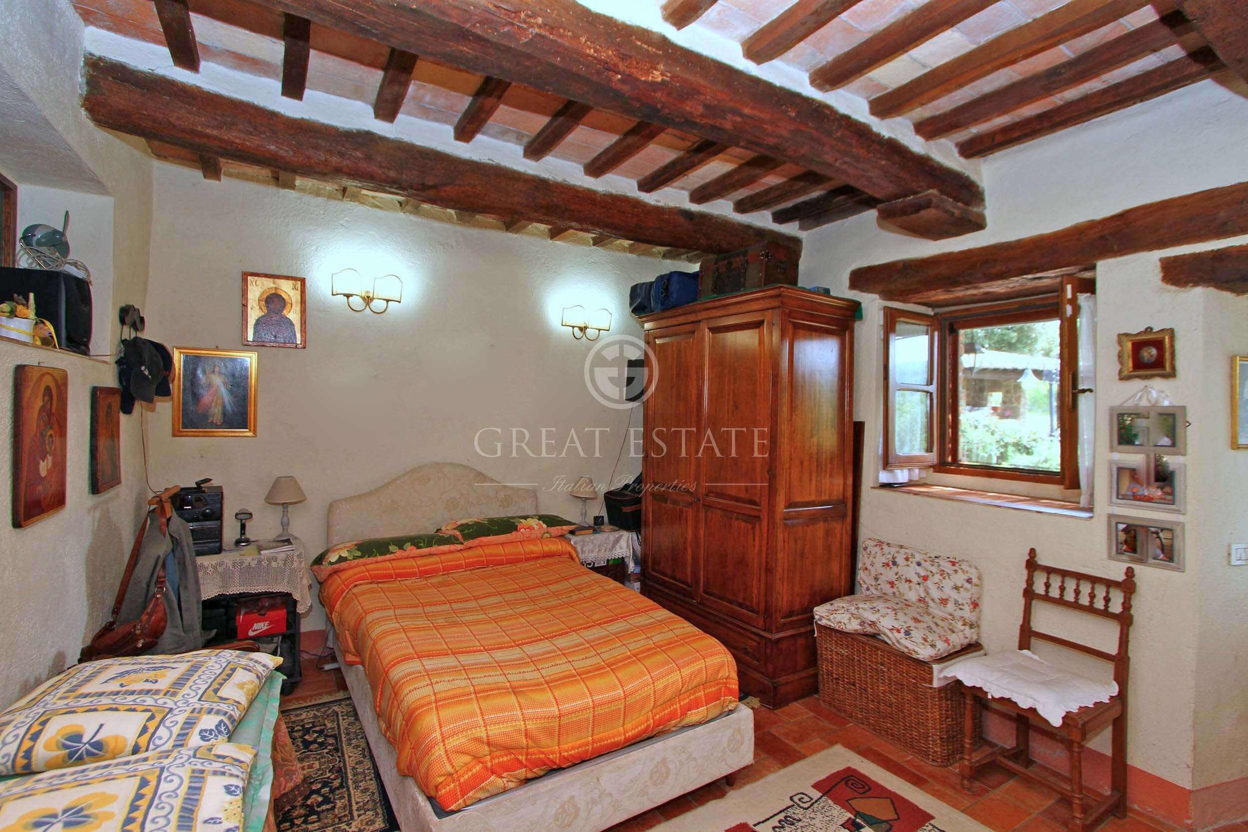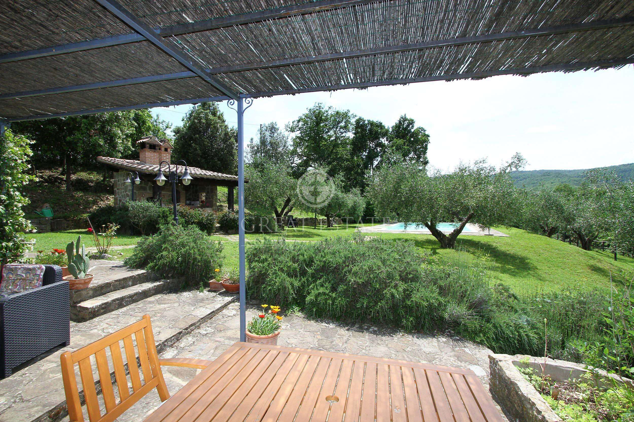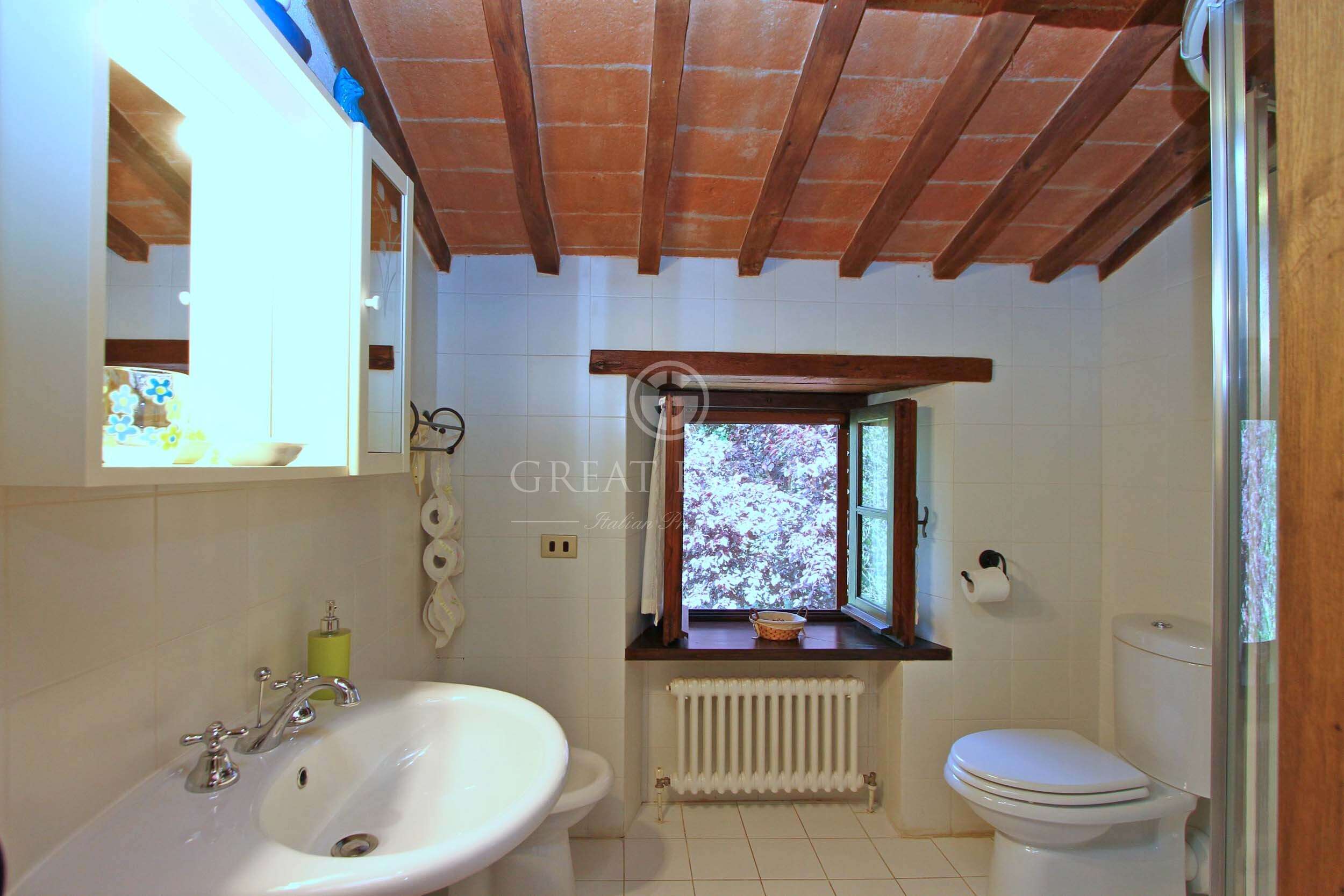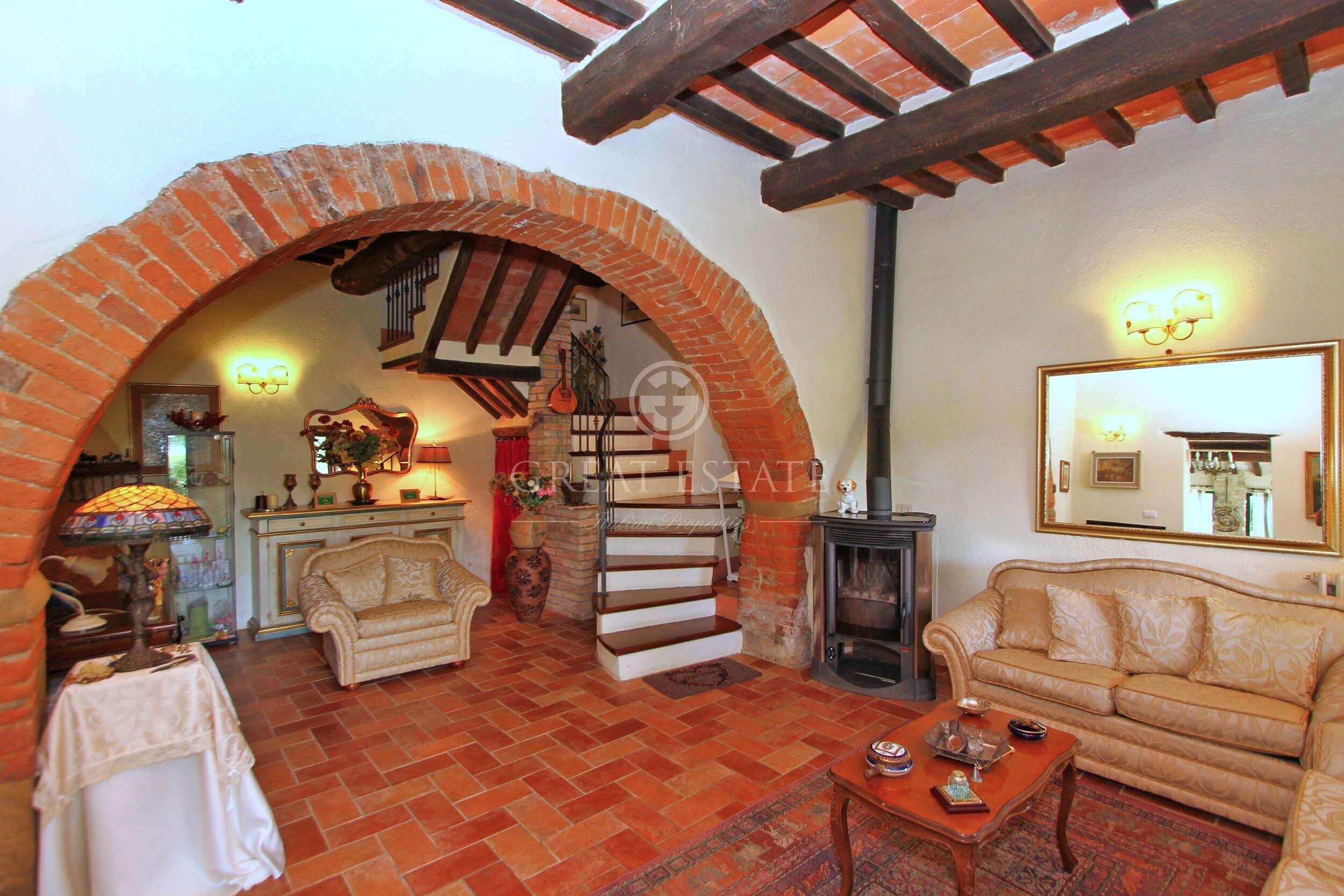 The farmhouse is made up of two levels. The ground floor, formerly used as an old stable, has been transformed into a beautiful living space consisting of a living room with wood stove, wood fireplace, wooden beams and terracotta floors, a very bright veranda with large glass windows, a dining room, a spacious kitchen with island, a study used as a bedroom, a service bathroom, a technical room, a pantry, a bathroom with shower, and a laundry room. The second floor is accessed via an internal English-style staircase, or from the outside with a restored ancient staircase, the bedroom with a larger four-poster bed (once used as a kitchen with a large fireplace), three bedrooms with en suite-bathrooms, a double bedroom, and two bathrooms with shower. During the restoration, the original wooden beams and terracotta tiles were kept. The garden with centuries-old olive trees and other ornamental plants, completely fenced, a swimming pool with a salt and chlorine system, a masonry oven with bbq, a shelter in which a photovoltaic system has been installed that develops 5.5kw.