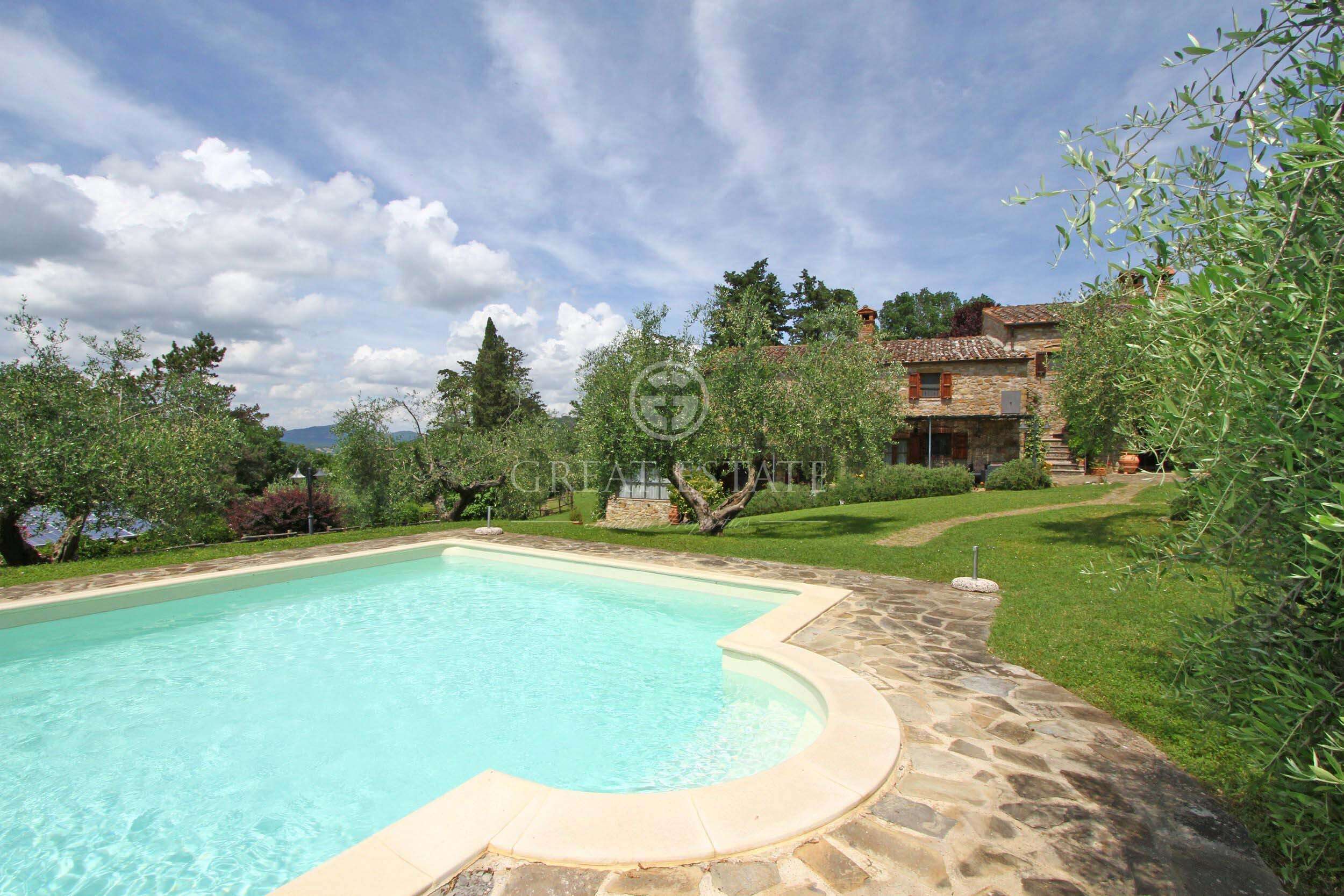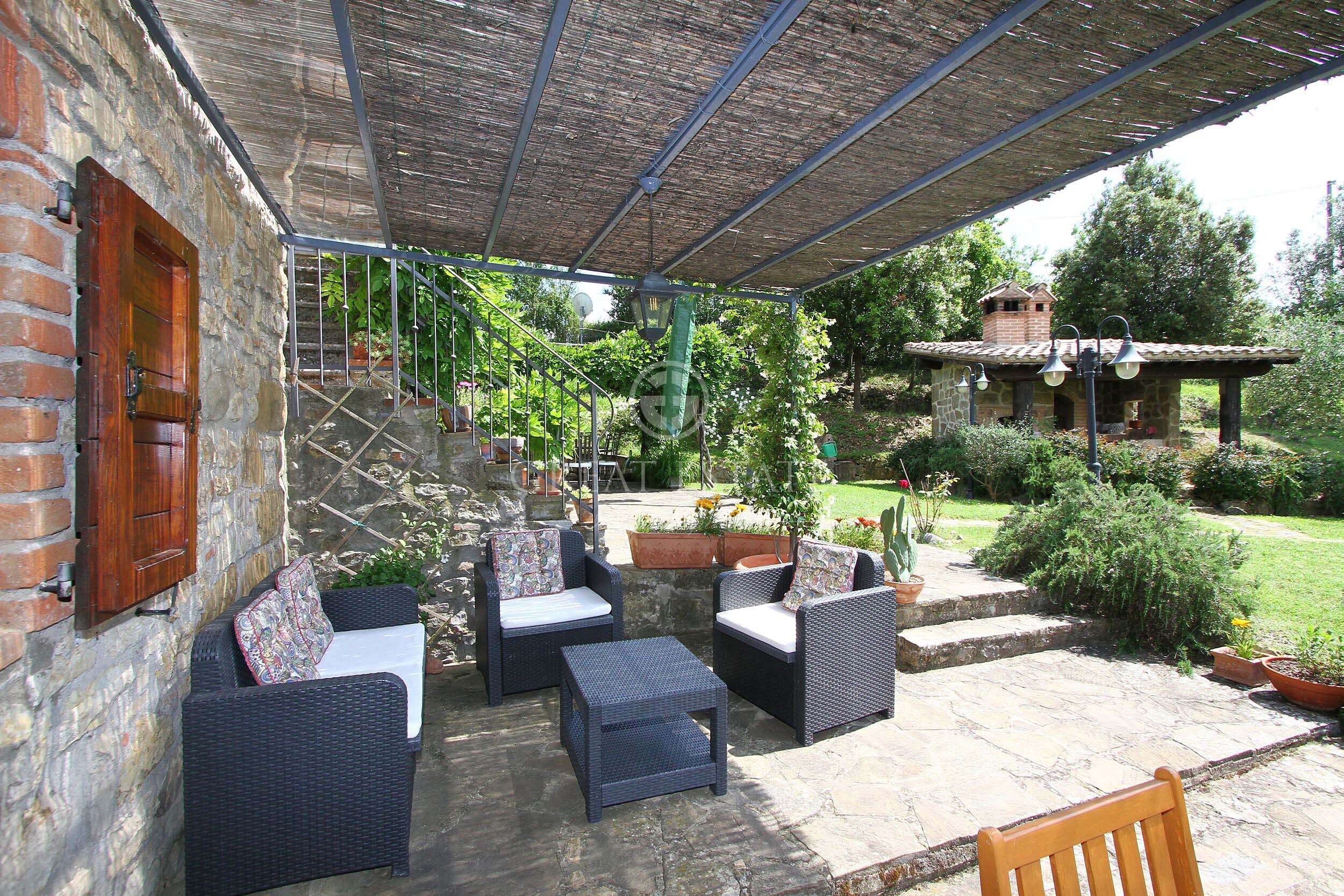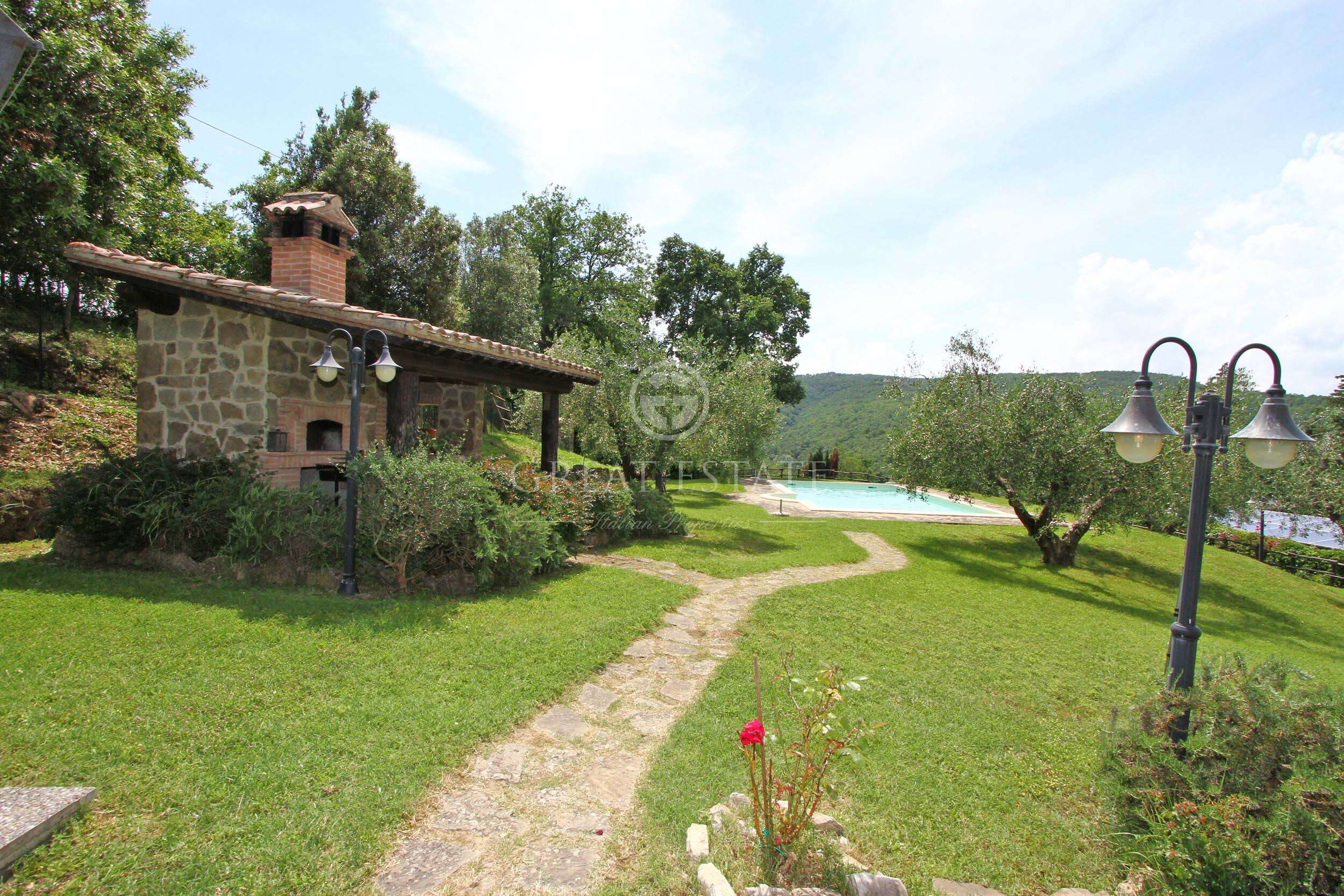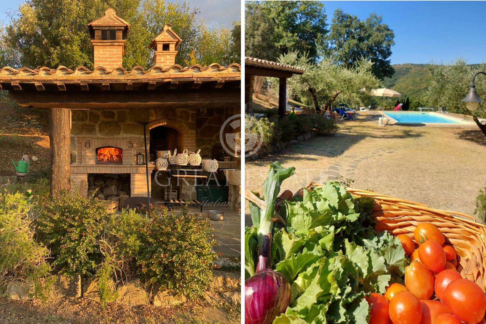The farmhouse is made up of two levels. The ground floor, formerly used as an old stable, has been transformed into a beautiful living space consisting of a living room with wood stove, wood fireplace, wooden beams and terracotta floors, a very bright veranda with large glass windows, a dining room, a spacious kitchen with island, a study used as a bedroom, a service bathroom, a technical room, a pantry, a bathroom with shower, and a laundry room. The second floor is accessed via an internal English-style staircase, or from the outside with a restored ancient staircase, the bedroom with a larger four-poster bed (once used as a kitchen with a large fireplace), three bedrooms with en suite-bathrooms, a double bedroom, and two bathrooms with shower. During the restoration, the original wooden beams and terracotta tiles were kept. The garden with centuries-old olive trees and other ornamental plants, completely fenced, a swimming pool with a salt and chlorine system, a masonry oven with bbq, a shelter in which a photovoltaic system has been installed that develops 5.5kw.