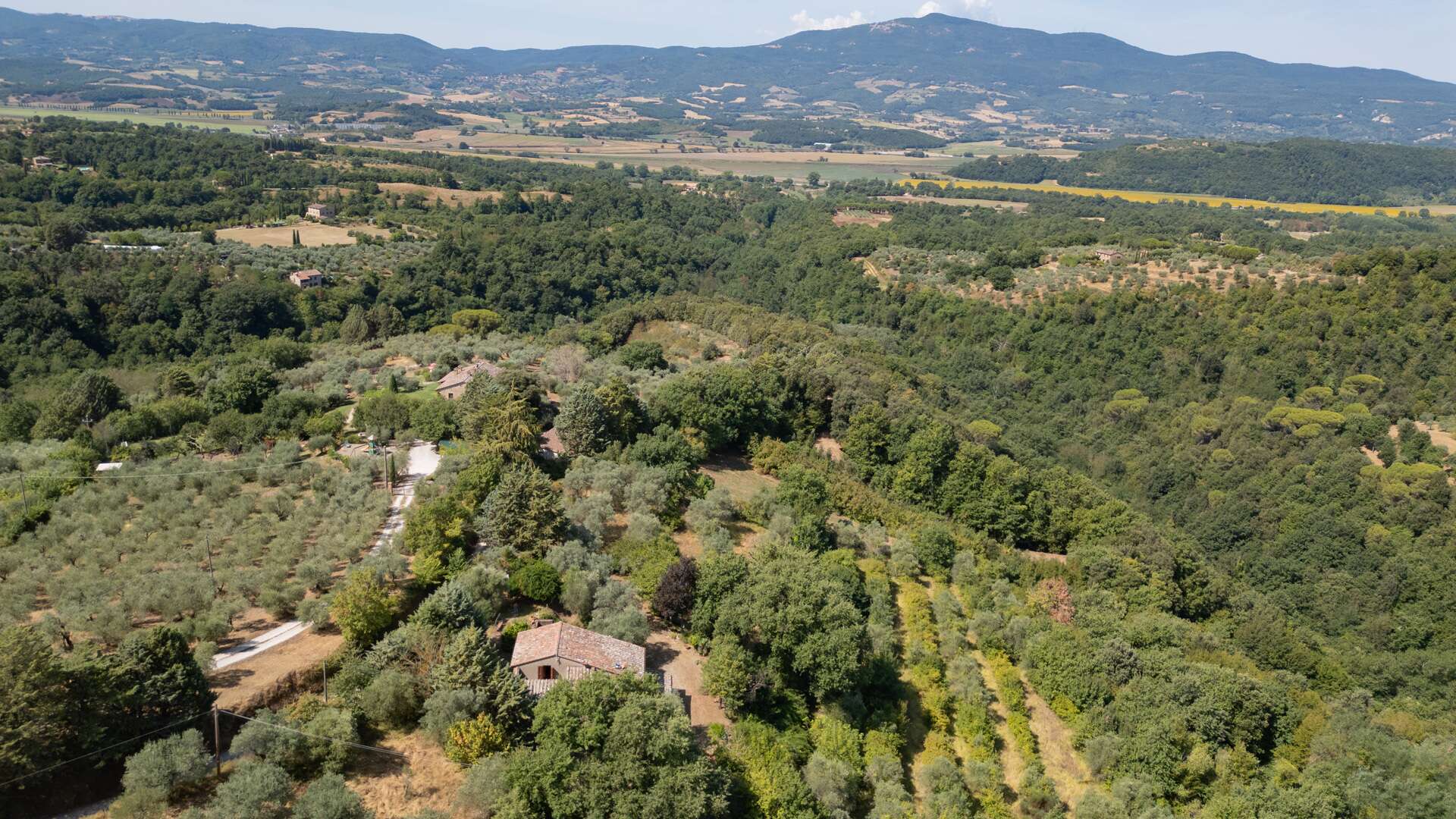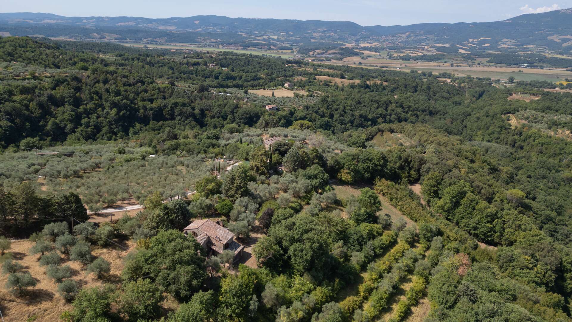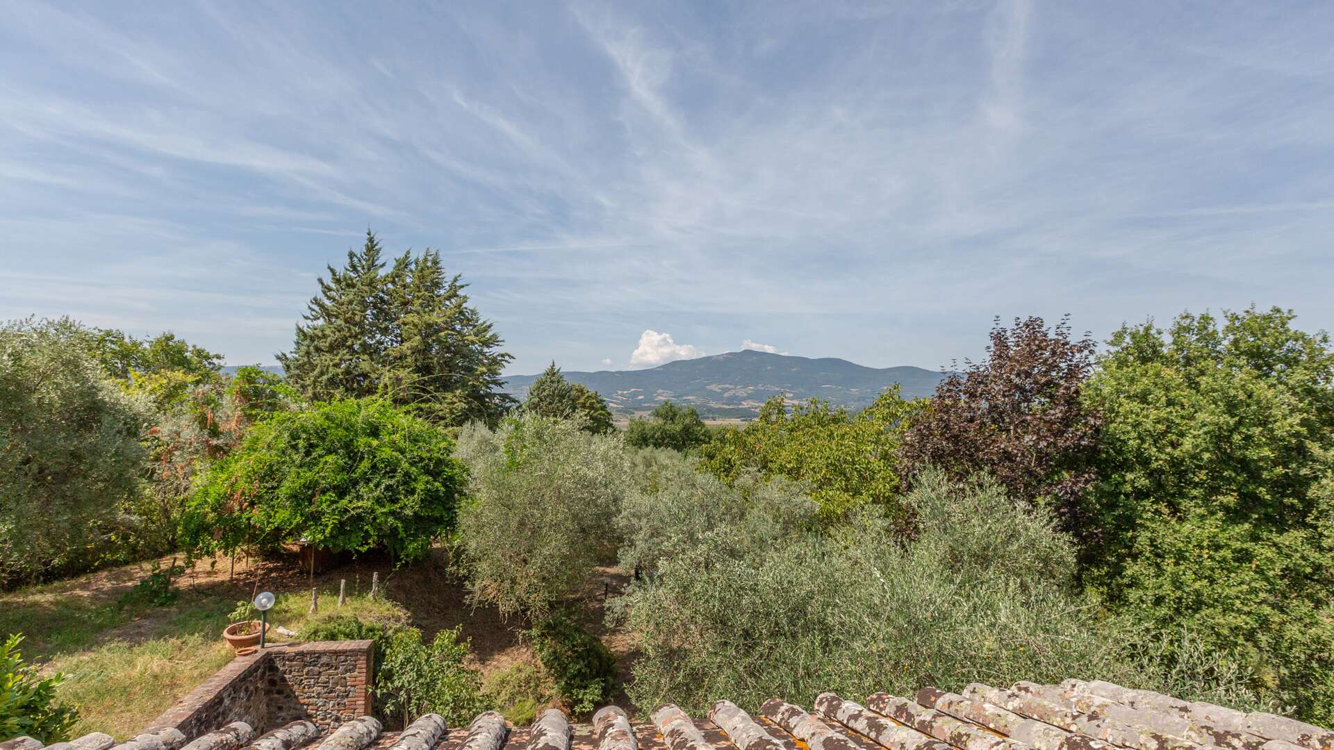 The property is located on the panoramic side overlooking the valley and Mount Cetona which is located in nearby Tuscany. The property is surrounded by greenery, 400 meters above sea level and access is via a dirt road of approximately 2 km which takes you to the historic center of Città della Pieve. The property enjoys maximum privacy and a splendid view of the surrounding nature.