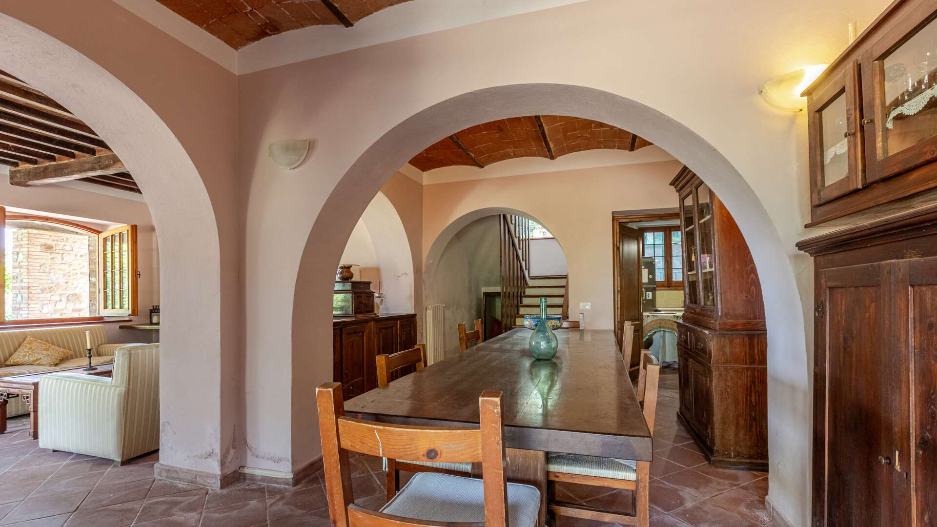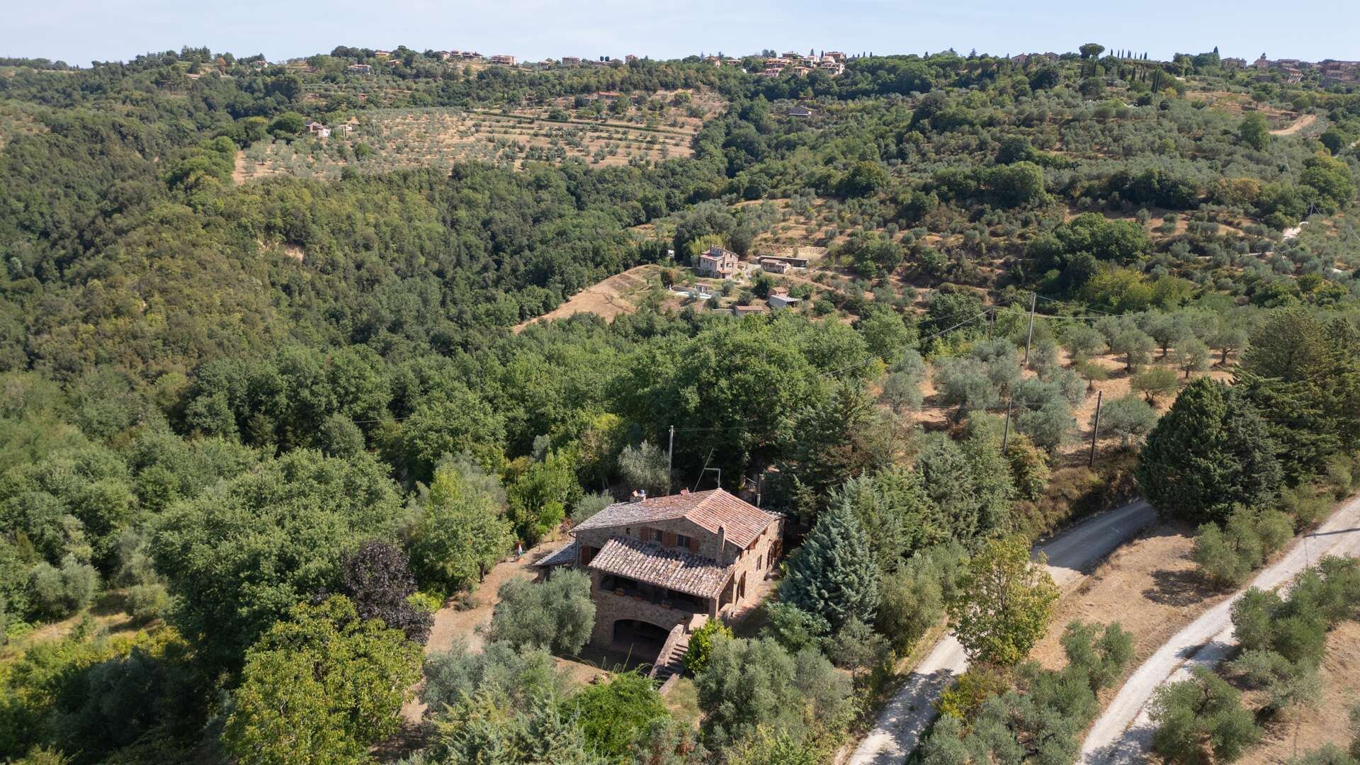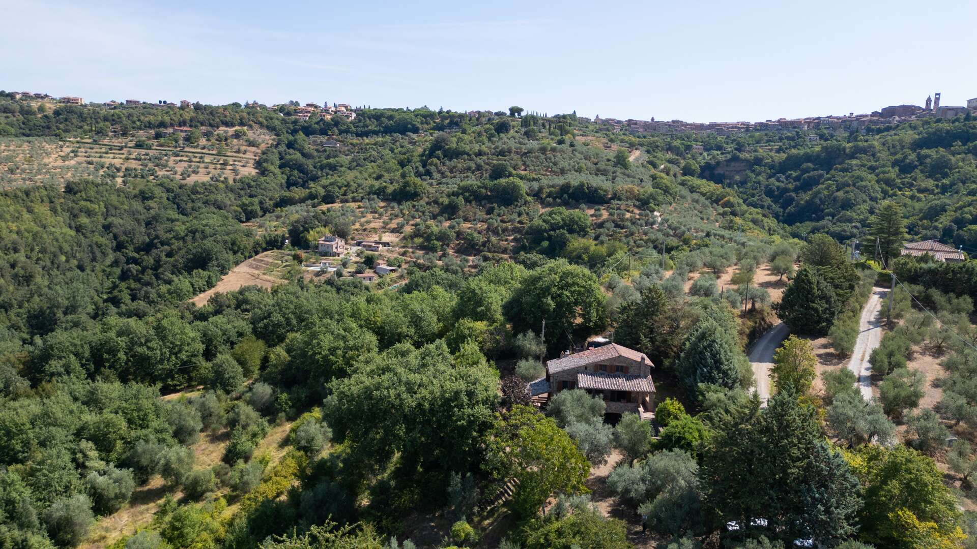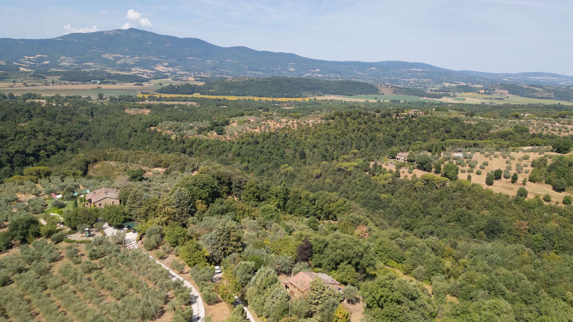The property is located on the panoramic side overlooking the valley and Mount Cetona which is located in nearby Tuscany. The property is surrounded by greenery, 400 meters above sea level and access is via a dirt road of approximately 2 km which takes you to the historic center of Città della Pieve. The property enjoys maximum privacy and a splendid view of the surrounding nature.