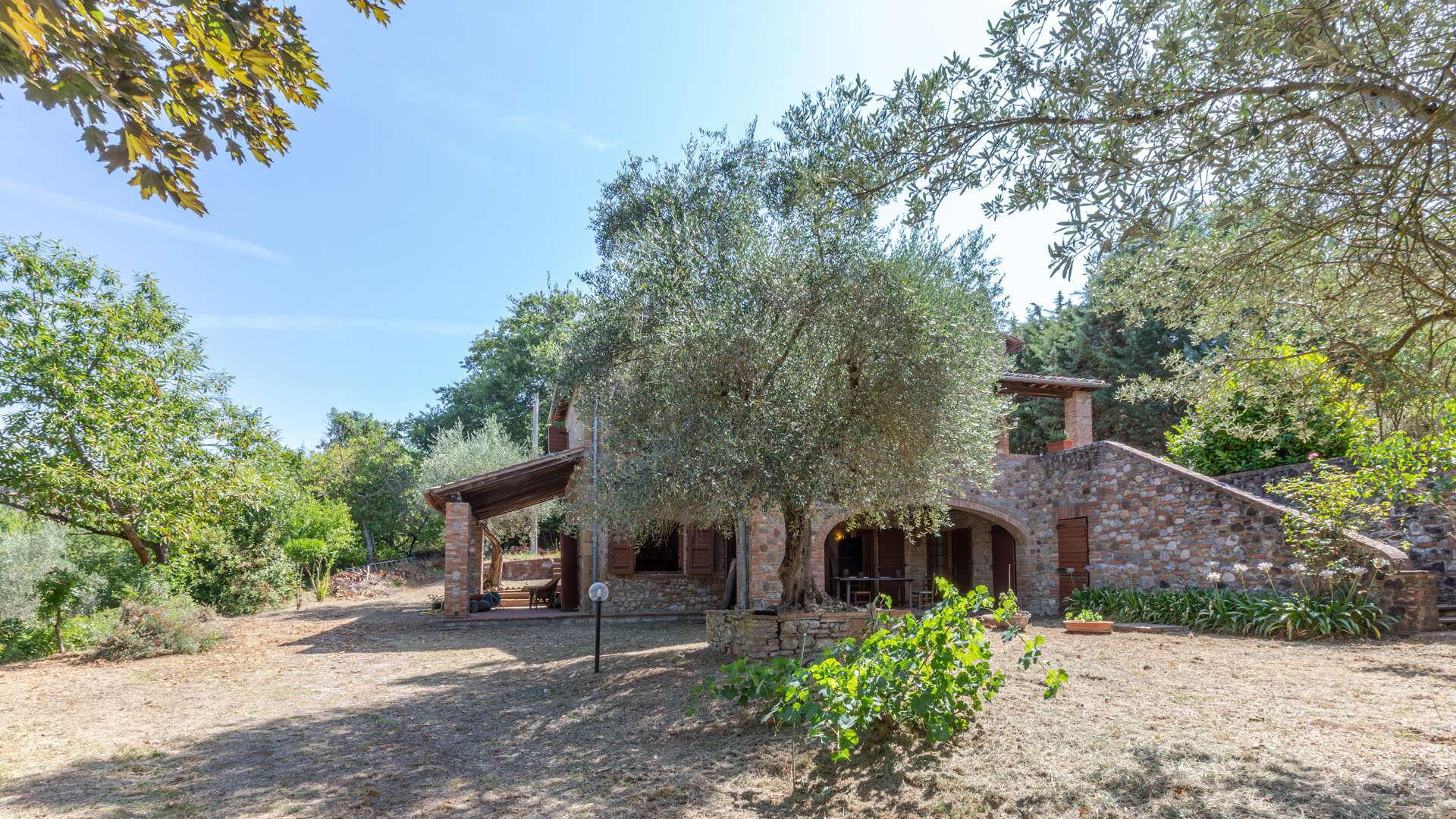 The property is located in an excellent position in the municipality of Città della Pieve and is made up of a renovated manor house on three floors surrounded by a lush garden with tall and ornamental plants, and an annex to be renovated. The property is located a few steps from the historic center and offers exciting and beautiful panoramic views of the surrounding countryside and nearby villages. In a perfect combination of proximity to the town and maximum privacy, within the wonderful landscape of the Umbrian countryside, we find the exclusive property "La Fonte Etrusca". The farmhouse develops an area of ??approximately 300 sqm spread over 3 floors and is internally arranged as follows: on the ground floor which is accessed via two independent entrances we find the large and welcoming living room, with a wood-burning fireplace, equipped with large French windows that fill it with light, a kitchen where there is an Etruscan cave with a truly unique source, and a bathroom. Via a beautiful and convenient staircase you go up to the two upper floors where we find: on the first floor three bedrooms and a study, and on the second floor two more bedrooms. The property also consists of an external annex of approximately 80 sqm to be entirely renovated. To complete the farmhouse there is a private garden.