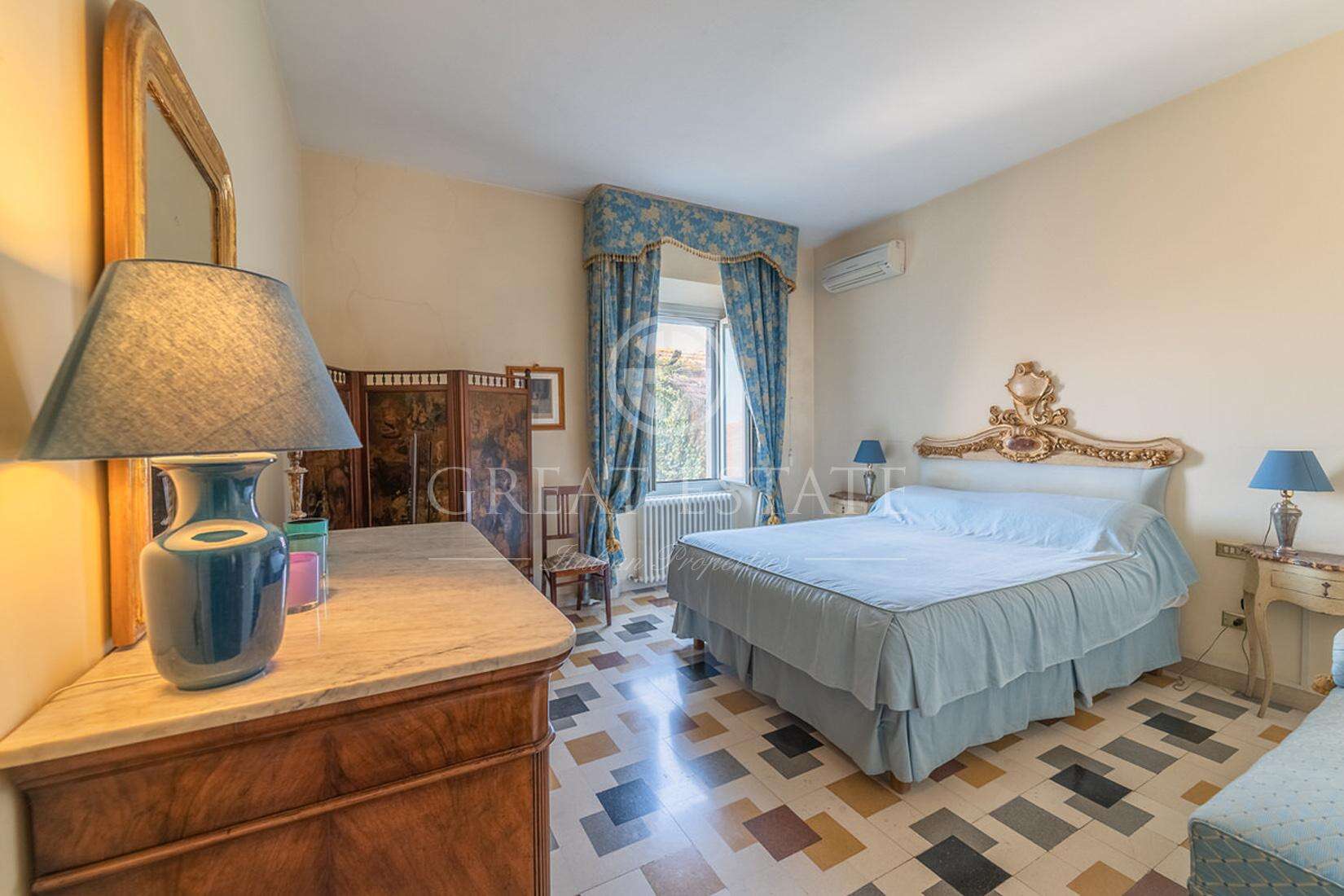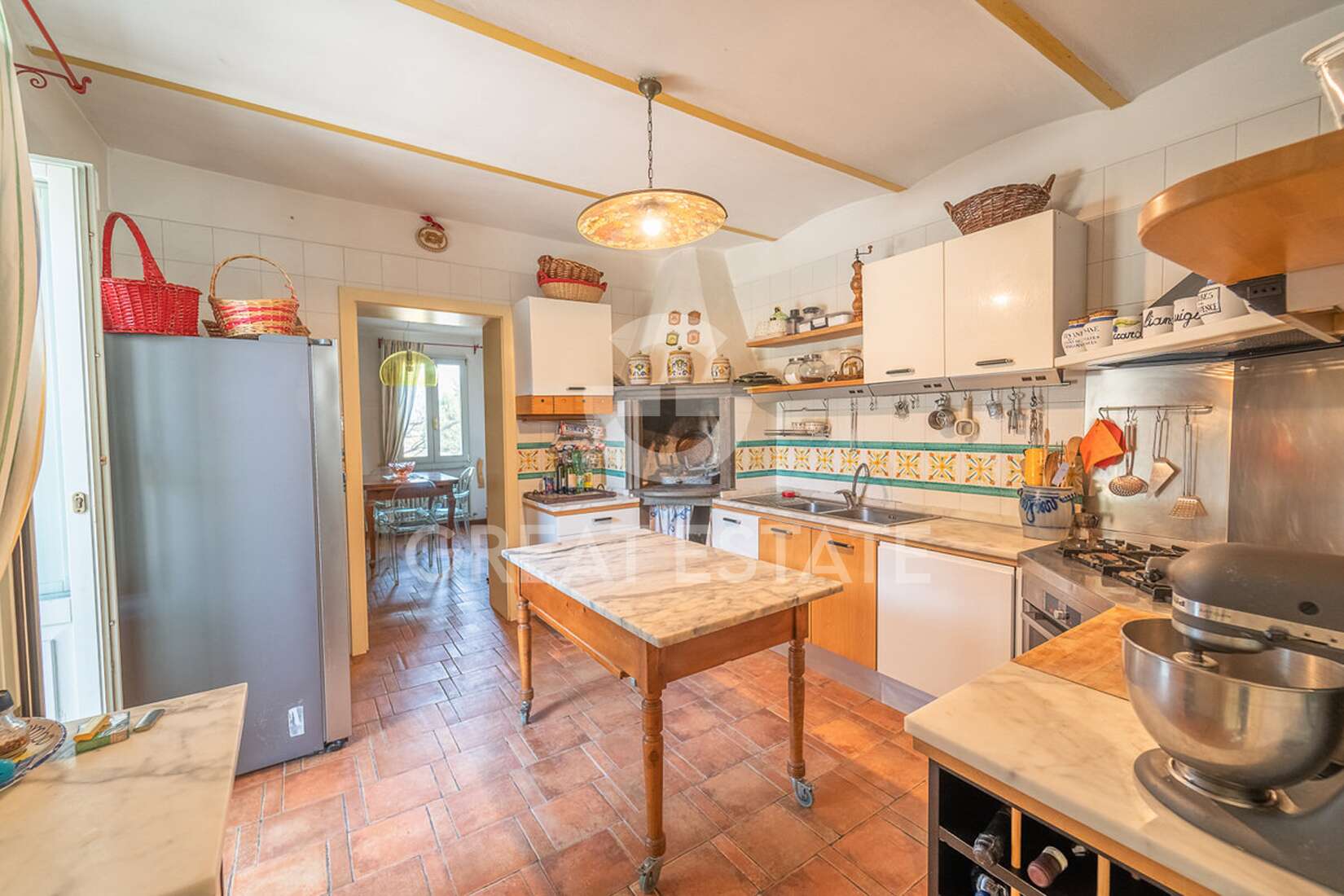 The main villa of the property in question consists of two adjacent buildings. The first, main building was recently renovated, and is distributed on four levels for a total of about 670 square meters. On the ground floor, beyond the entrance, there are two bedrooms, a bathroom, a laundry room, a wood shed, two cellars and a garage of about 76 square meters. The first floor is used as a living area with a double living room with direct access to the terrace (about 47 sq m) and a kitchen with direct access to a second terrace (about 70 sq m). Both terraces allow access to the garden via an external staircase. On the second floor there is the sleeping area consisting of three bedrooms, a study, a single room used as a walk-in closet, two en suite bathrooms, one with a whirlpool tub. On the third floor there is a liveable attic space with a bedroom and bathroom for the service staff. The second building of the villa, with an independent entrance, is on three levels for about 432 square meters. and requires internal restructuring interventions. Structurally solid, the building has six floors and a boiler room on the ground floor, three bedrooms, a kitchen with fireplace, double living room and bathroom on the first floor, attic with bedroom on the second floor. Overlooking the pool area, there is an annex which is divided into three units: the first annex is about 114 square meters with a lounge, kitchen, bathroom and large terrace that has been recently and finely restored. The second annex (distributed on two levels for an area of about 603 square meters) needs internal restructuring, while the third annex or unit consists of a lemon storage house of about 50 square meters. The property includes approximately 5,200 square meters of land/garden with an infinity pool of 15 x 8 meters. The buildings, pool, car park, and surrounding garden are all completely fenced and with a double automatic gate.