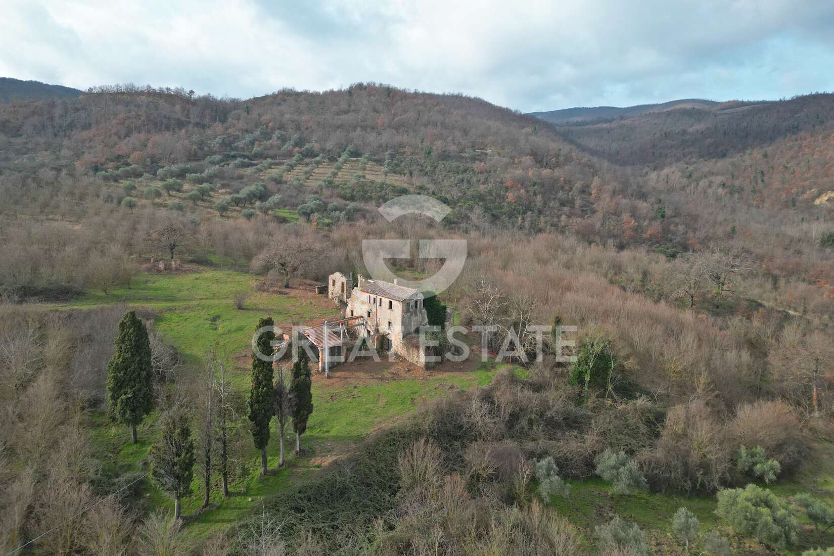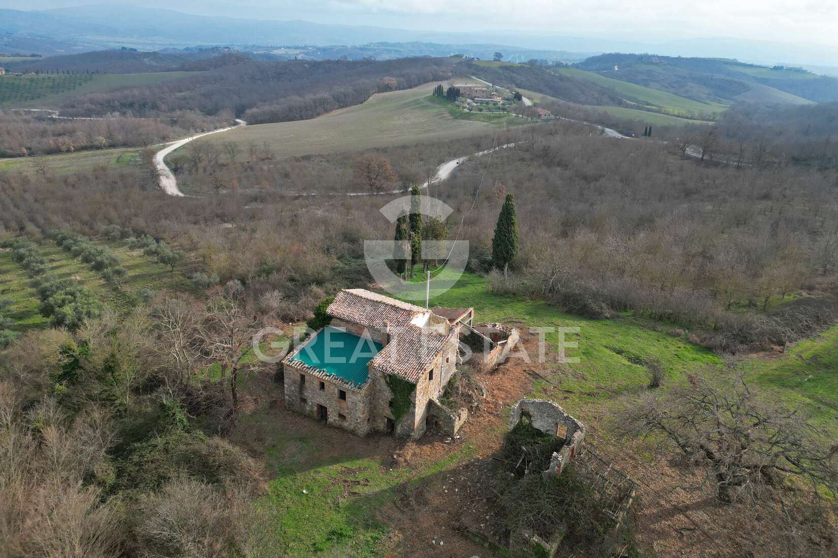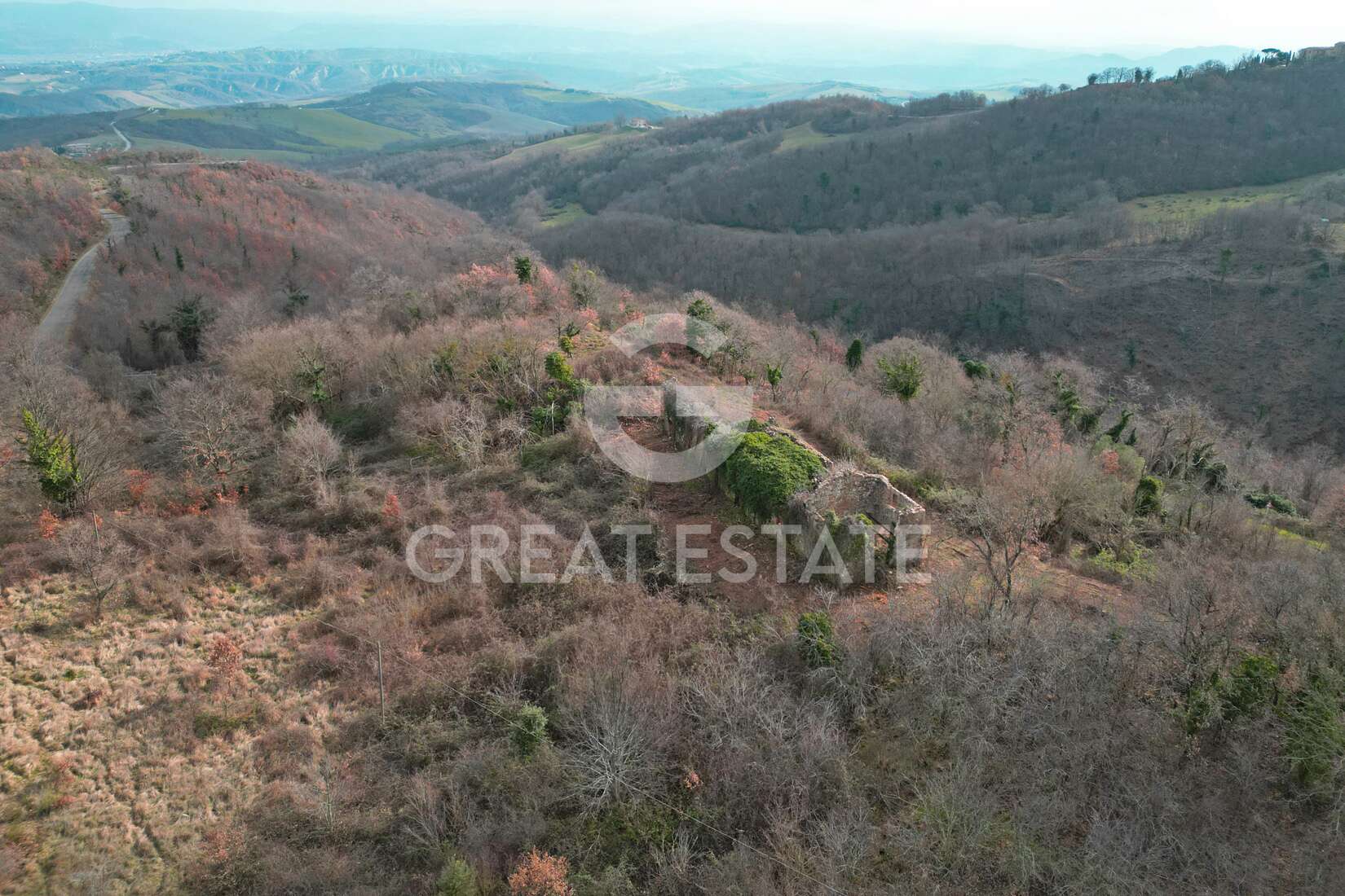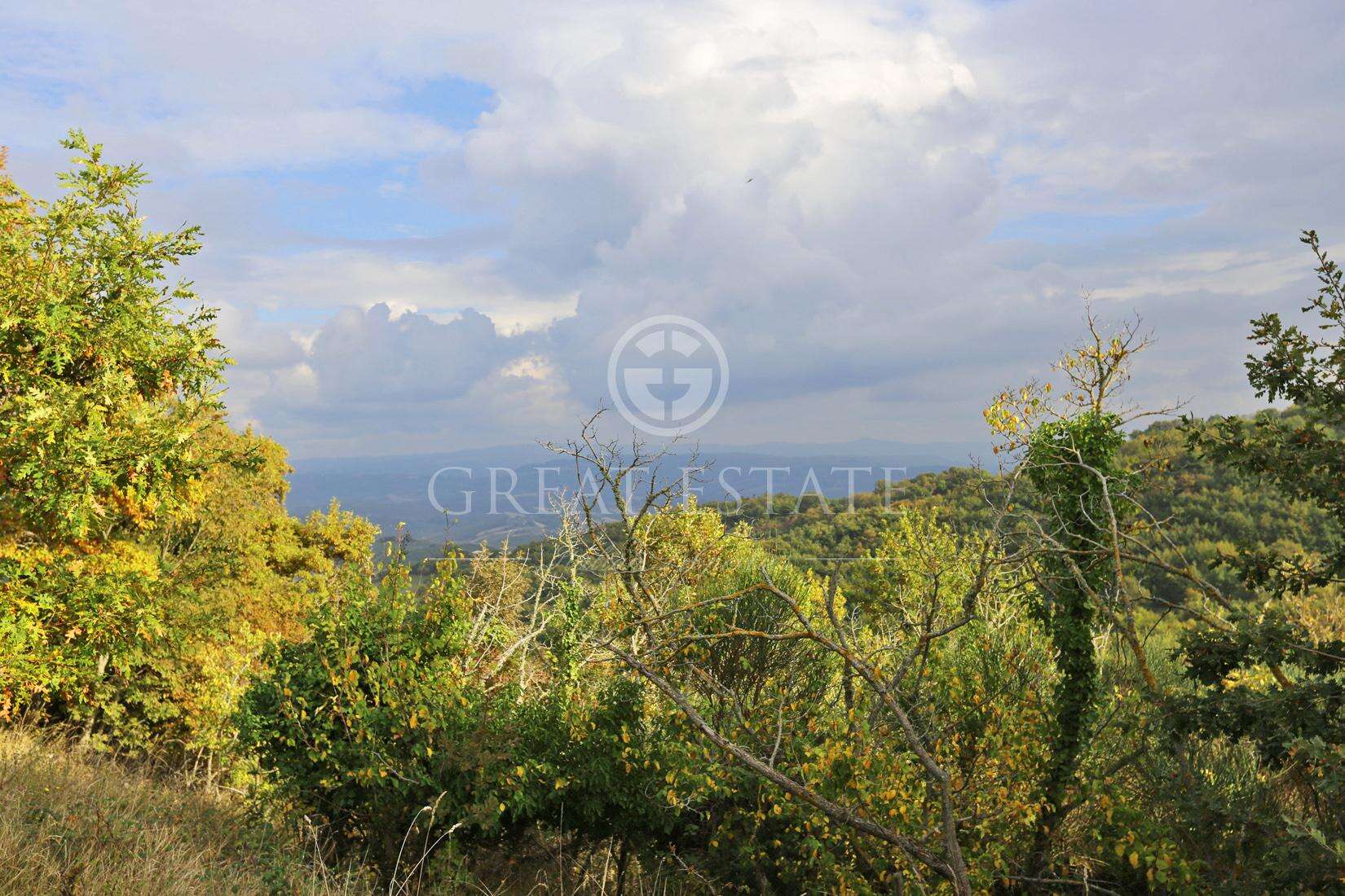 Surrounded by the gentle Umbrian hills and with amazing panoramic view, this property is composed of two buildings to renovate and several annexes. The main estate, the old noble one, has a 715 sqm surface on four levels: originally, the basement floor was used as animal shelter and storage room, while the upper ones were residential. One of the two annexes has a surface of 115 sqm on two levels, while the other develops itself on a unique level for a surface of 18 sqm. The second building with annex covers an area of 500 sqm on two levels. The property includes 81 ha of land: 38 ha of wood, 30 of pasture, 9 of arable land, 4 of olive grove and 3 of uncultivated land.