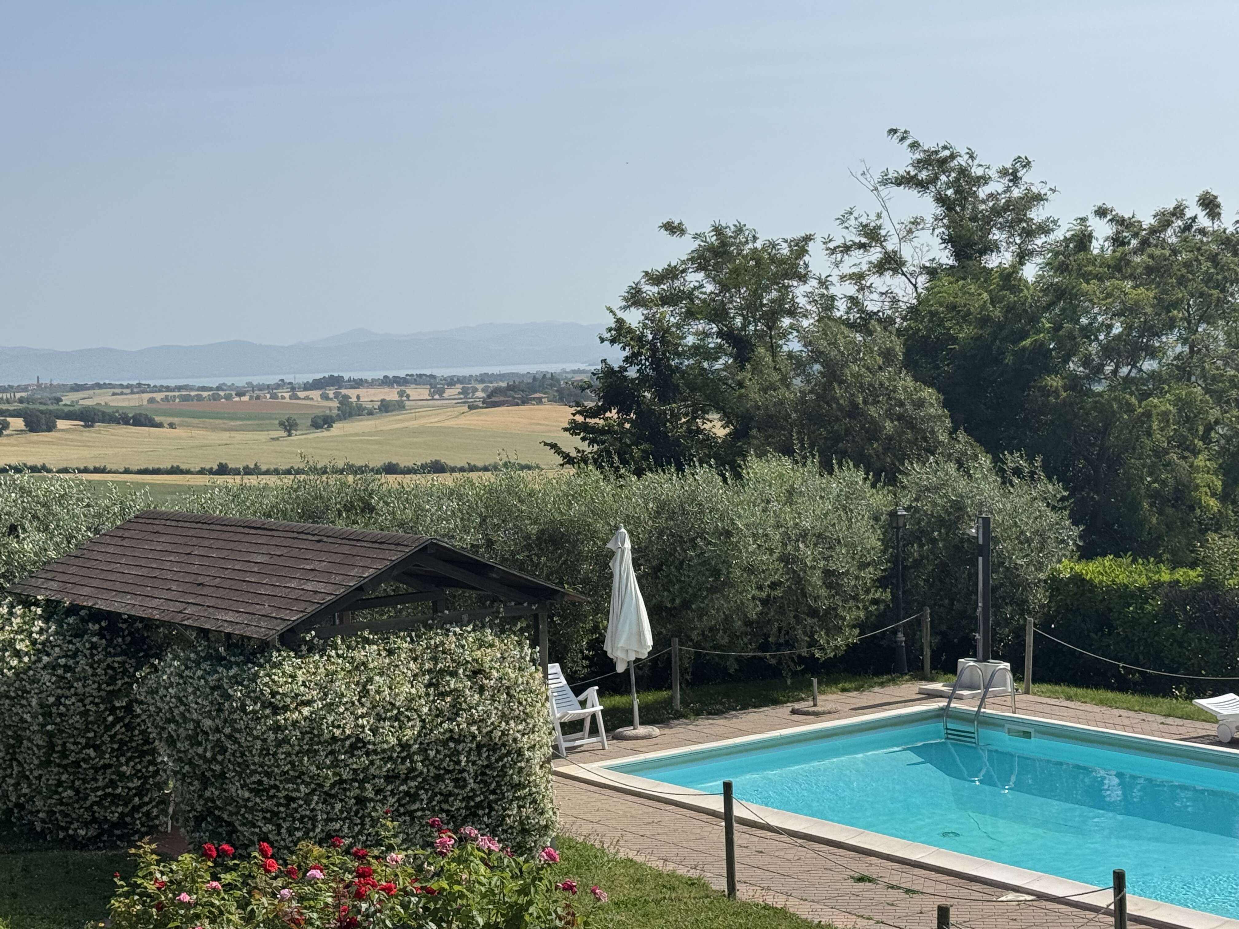 Nestled in the tranquility of the Umbrian hills, just under 4 km from Castiglione del Lago, this property occupies a privileged position in the heart of Lake Trasimeno. The setting strikes a perfect balance between privacy and accessibility, with a white gravel road of less than one kilometer leading to the estate. The views encompass the lake and the gentle surrounding hills, offering expansive and luminous panoramas. Conveniently close to essential services and renowned tourist destinations, this location represents a unique opportunity for those seeking elegance and tranquility.