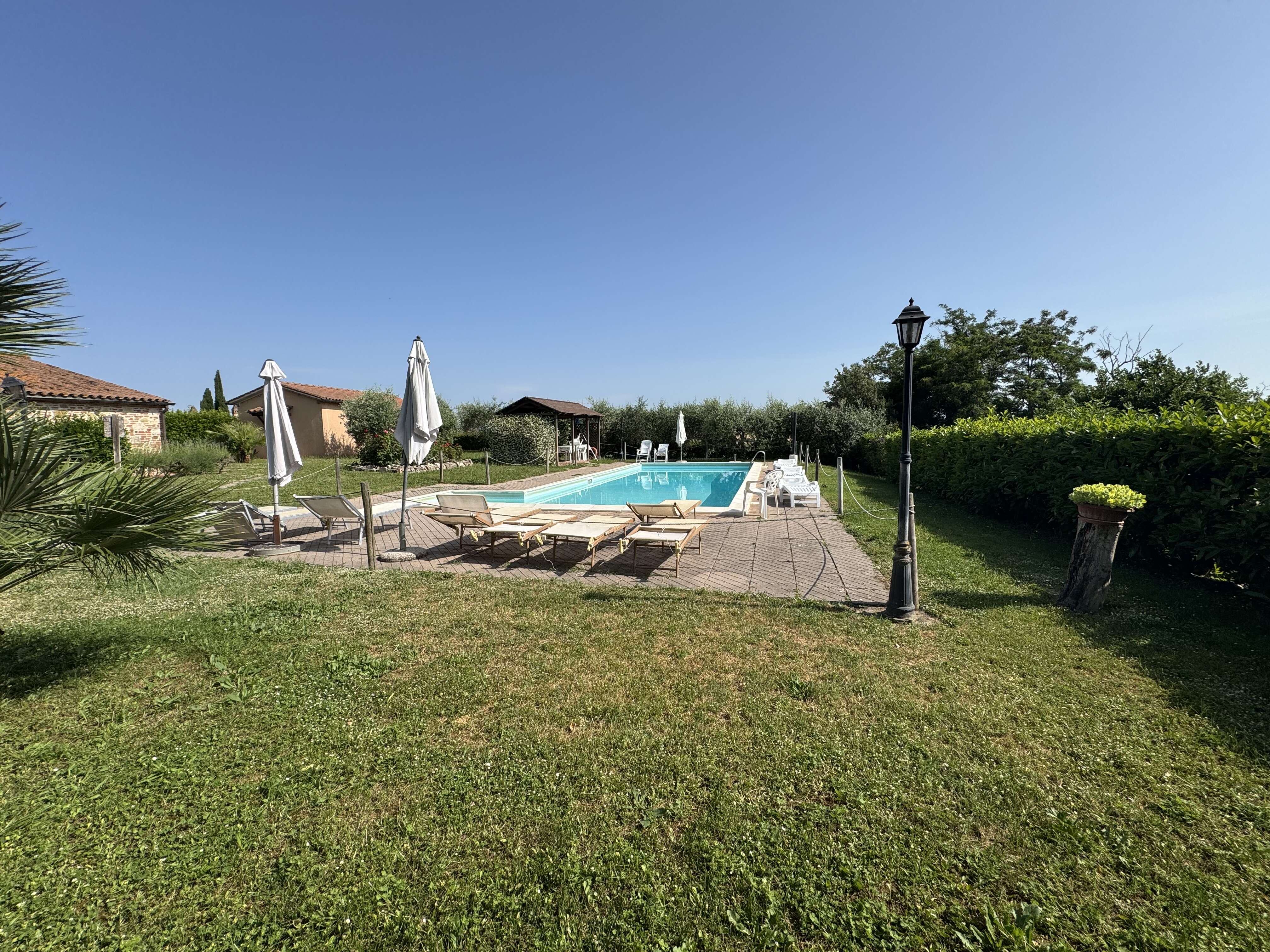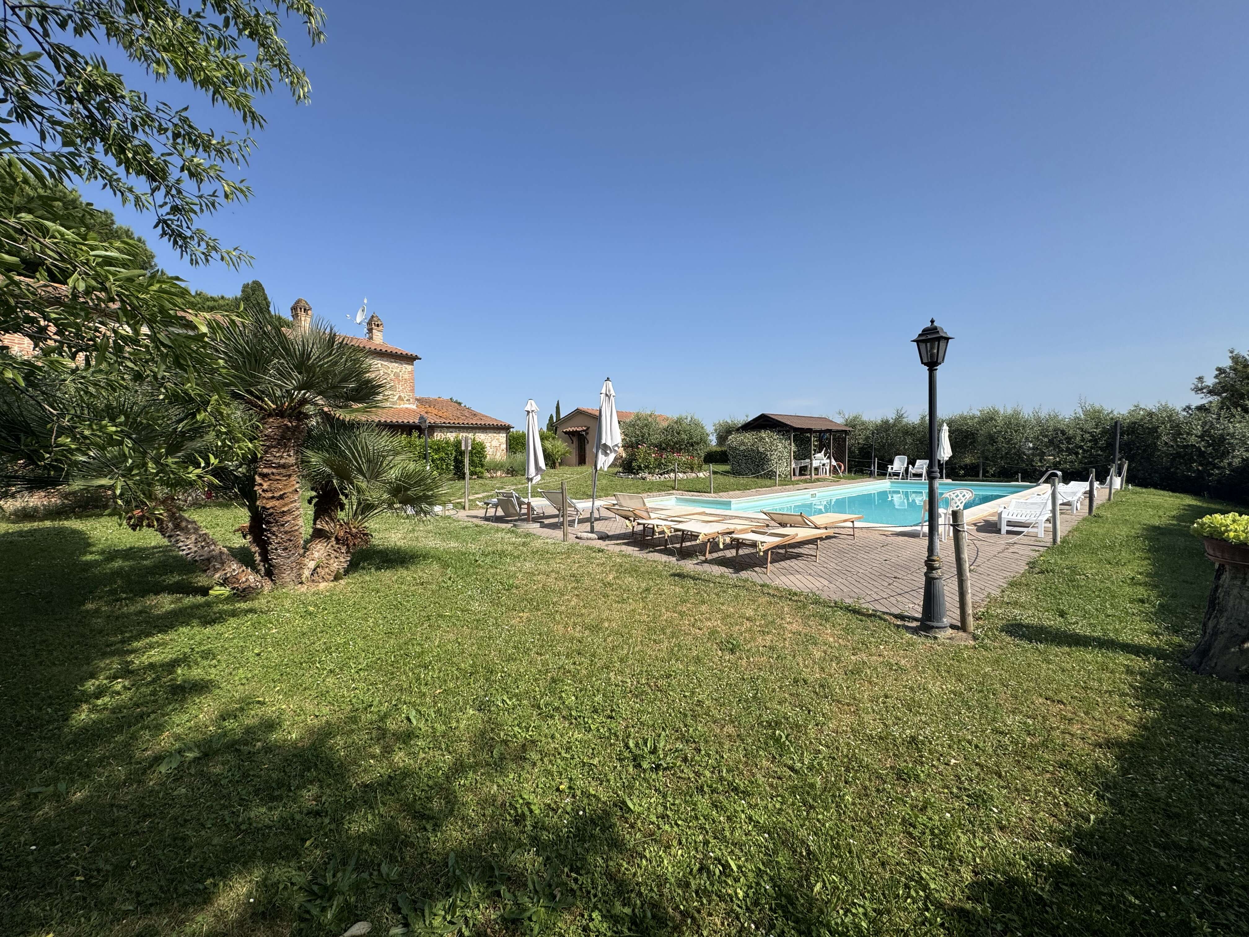 This property offers a high level of privacy within a natural and panoramic setting near Lake Trasimeno, making it ideal as a primary residence or a second home for those seeking tranquility and open spaces. The presence of a swimming pool and a spacious garden enhances its versatility, perfect for conversion into a holiday home or an intimate boutique relais. Its strategic location, just a few kilometers from key amenities and transportation routes, ensures excellent accessibility without sacrificing peace and seclusion. The building’s subtle historical charm adds character, making it an attractive investment opportunity for experiential tourism or exclusive events in a prestigious and captivating environment.