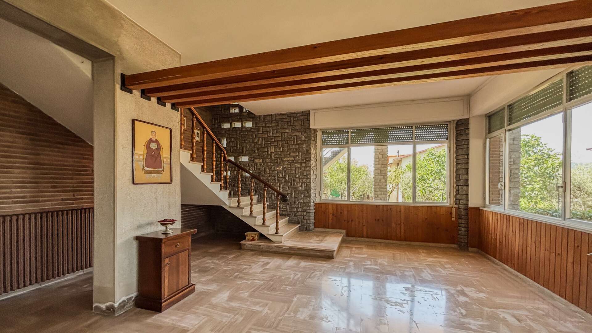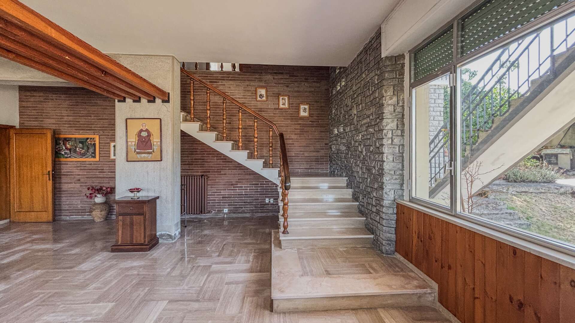 Built in 1970, the villa has a thoughtfully rational architectural style and a superb internal layout. The roof was renovated in 1999, ensuring structural integrity. The main entrance on the ground floor opens into a spacious double-aspect master living room. A grand staircase leads to the first floor where the main apartment is located, featuring a breakfast room with kitchen that opens onto a loggia—this space can easily be transformed into a large open-plan area. Adjacent, the elegant and bright living room serves as a refined reception area. Five bedrooms provide versatile and functional accommodation, complemented by two bathrooms.