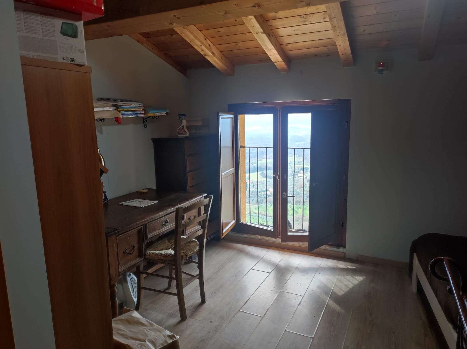 The main structure has an independent entrance and includes habitable terraces, offering magnificent views of the valley. The farmhouse, used as a holiday home, is on three floors. On the ground floor there is a first apartment composed of a living room with kitchenette, a bedroom and a bathroom. Outside there are cellars and a tool shed with technical room. On the first floor there are two independent apartments: one has a living room with fireplace and on the second floor three bedrooms and a bathroom; the other has external access and leads to a large terrace, living room, kitchen, two bedrooms and a bathroom.