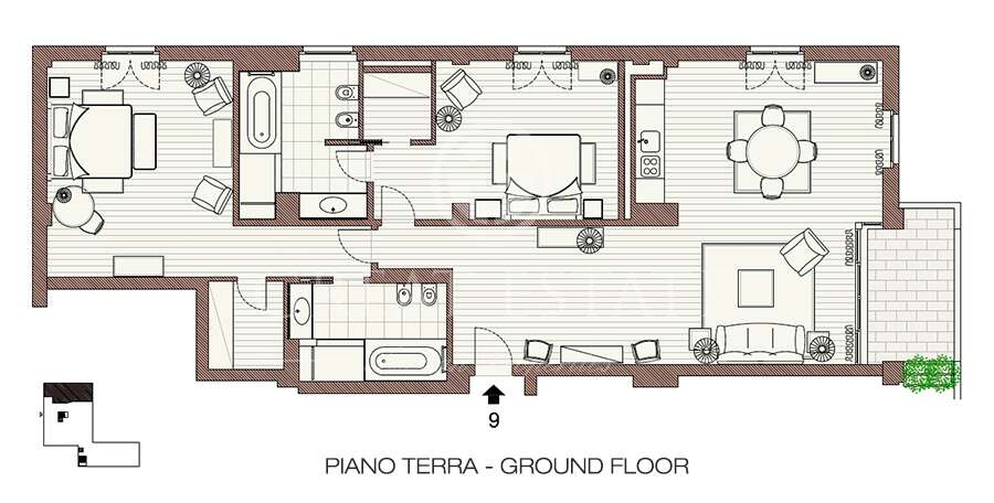 The apartment for sale, The Luxury #9 has a total area of about 156 sqm. The property is located on the ground floor and spread on the unique level consisting of: