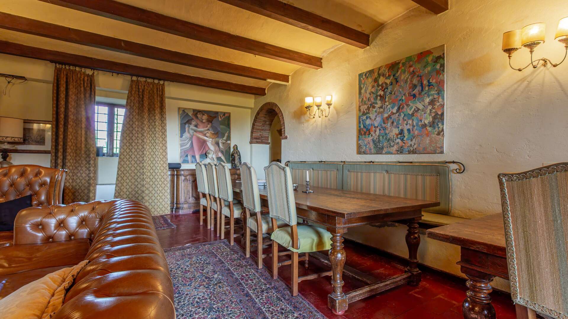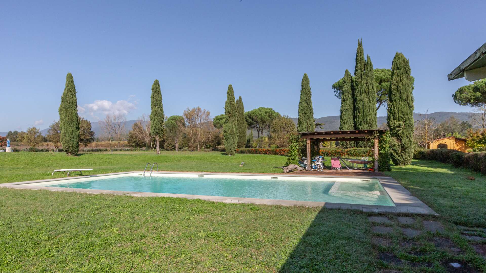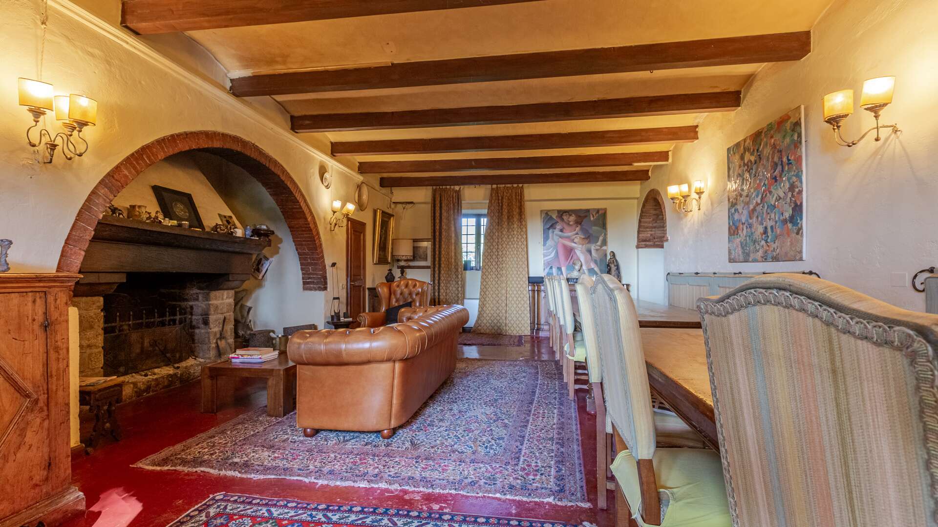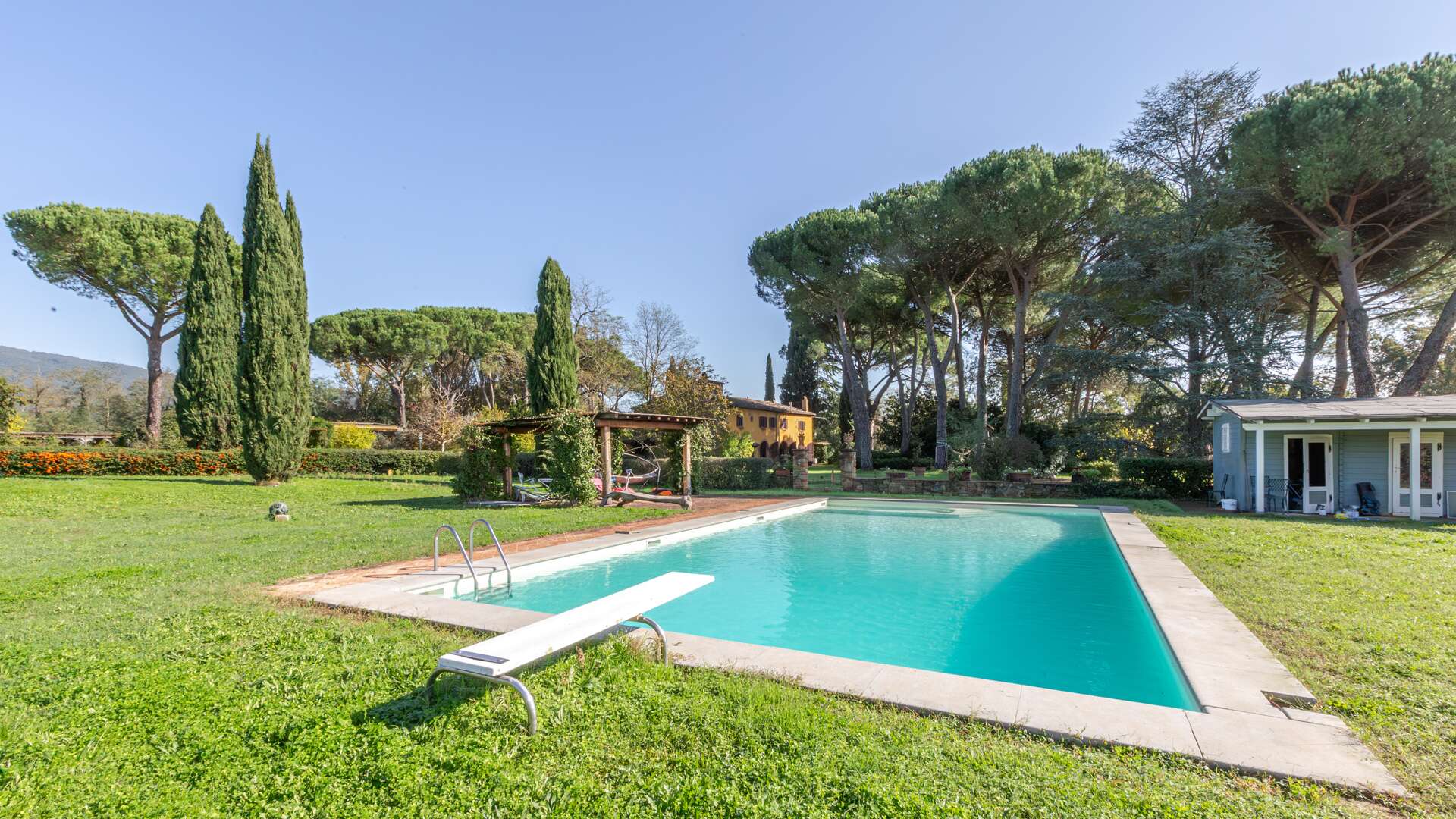 This historic farm awaits you in a picturesque corner of the Arno Valley, in Tuscany. The farmhouse dates to 1700, it has been carefully restored in 2009. The house is divided over two levels for a total living area of approximately 1,031 sqm. It is surrounded by a green area of over 31 hectares that includes a varied landscape of farmland, woods, gardens, and specialized vineyards. The outdoor area offers a harmonious environment with a swimming pool, surrounded by a well-kept garden, creating the ideal setting for days of relaxation and conviviality. The panoramic views of the surrounding countryside offer an atmosphere of tranquillity. The house has an independent entrance and can be easily reached via a paved road in less than 500 metres from the main entrance. The interior of the farmhouse features large reception areas, with historic rooms characterized by traditional architectural elements. The windows invite plenty of natural light and offer a view of the surrounding landscape. Where possible, the bedrooms could be equipped with en-suite bathrooms, ensuring comfort and privacy. Although the interior finishes show a satisfactory level of quality, the modern systems, such as water and heating, fall within a maintenance range of over 20 years. The elegant and functional stairs lead to the various levels of the house. Outside, there are spaces dedicated to the stabling and resting of horses, as well as an area that could potentially be used as a riding school. This property offers multiple opportunities, including the possibility of tourist and hospitality development, given its strategic position a short distance from touristic centres and historical attractions. The large garden and land offer opportunities for cultivation and outdoor activities, making the property ideal for those who wish to fully immerse themselves in nature and rural Tuscan life. The property is characterized by a high level of privacy and represents a unique opportunity for people seeking a haven of peace and history, with incredible development potential in a context of great historical and naturalistic value.