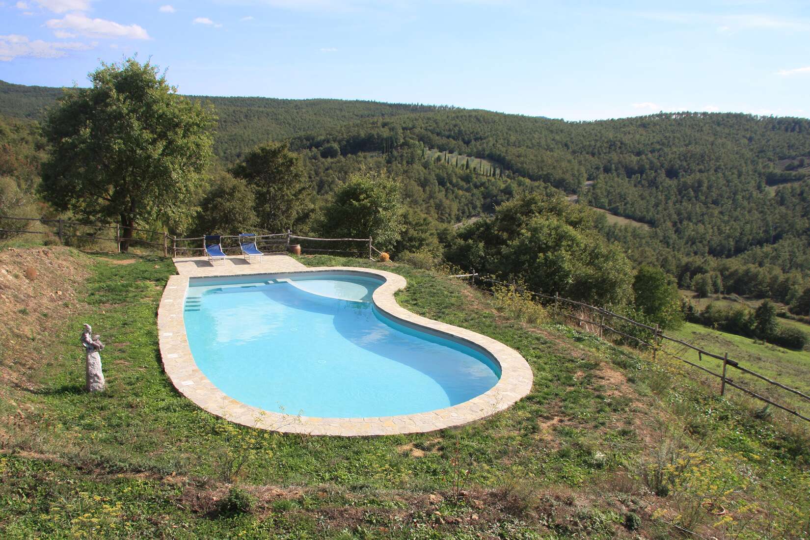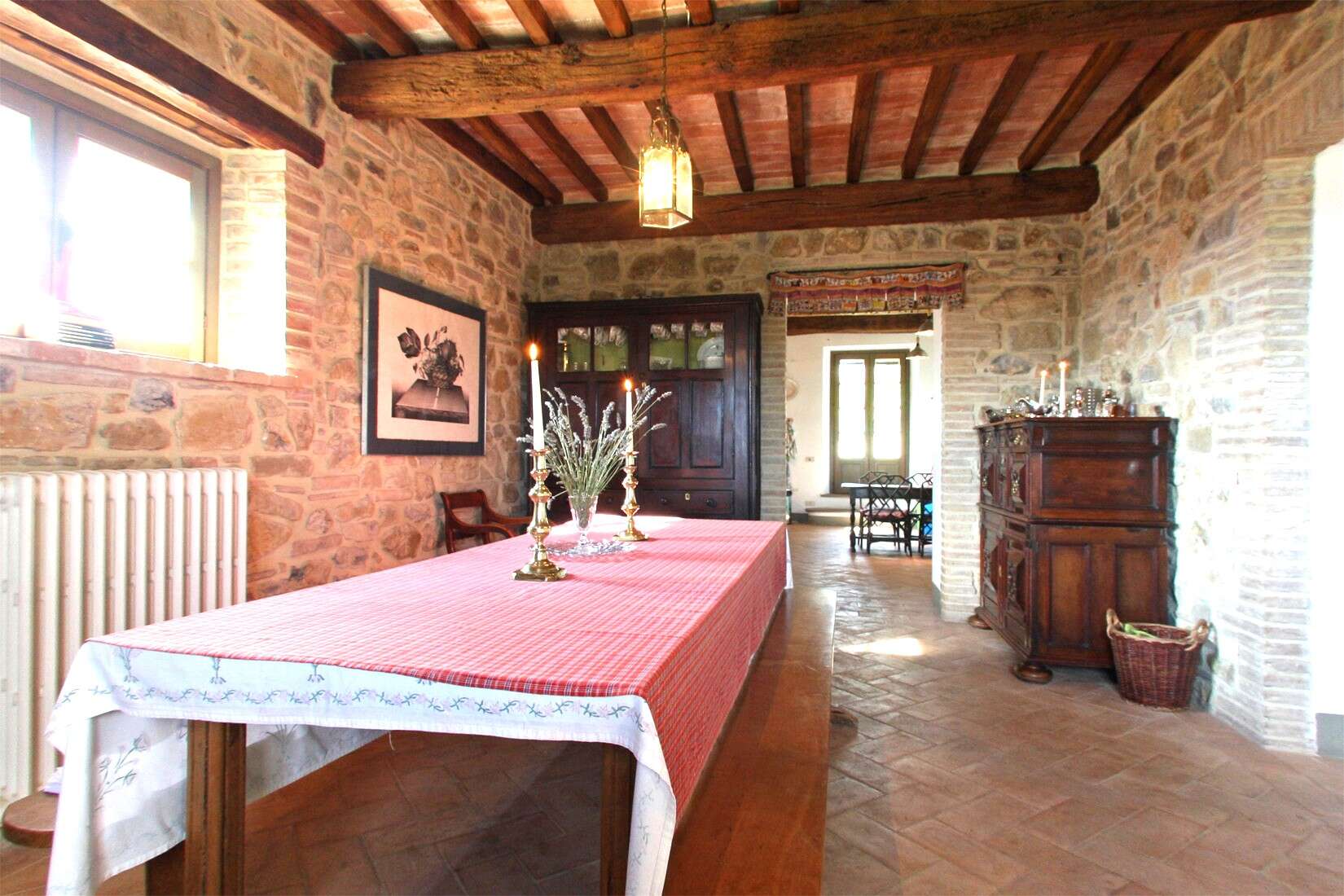 On the border with Tuscany, Val D'Orcia and near the famous spa center of San Casciano dei Bagni, beautiful farmhouse with swimming pool. The property has a gross living area of approximately 490 sqm spread over two levels and internally arranged as follows: on the ground floor we find a large entrance hall, a large fully equipped and modern kitchen, a dining room, a study/TV room, a storage room and guest toilet, 3 ensuite bedrooms and a technical room. On the first floor, which is also accessed by an external stone staircase, we find another entrance, a large and welcoming living area with fireplace, a second kitchen, 3 double bedrooms and 2 bathrooms, one of which houses a free-standing round bathtub and a large shower. Annex and pergola to be recovered and rebuilt. The property includes a 15x7 m oval-shaped swimming pool and a garden-park of approximately 1 ha where you can enjoy the beautiful view of Val D'Orcia and its spectacular sunsets. The property undoubtedly has a lot of potential although it currently needs to be restored to its former splendour.
