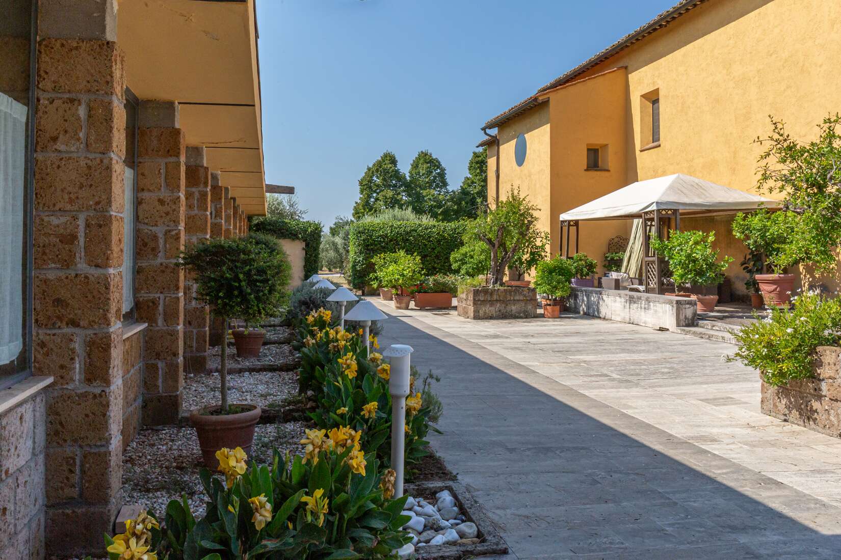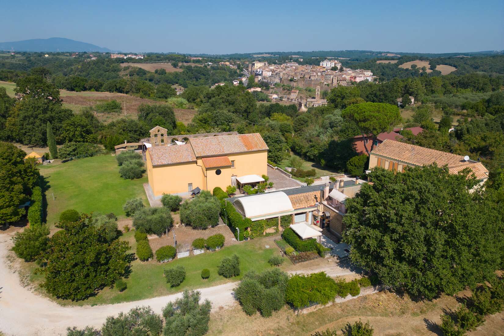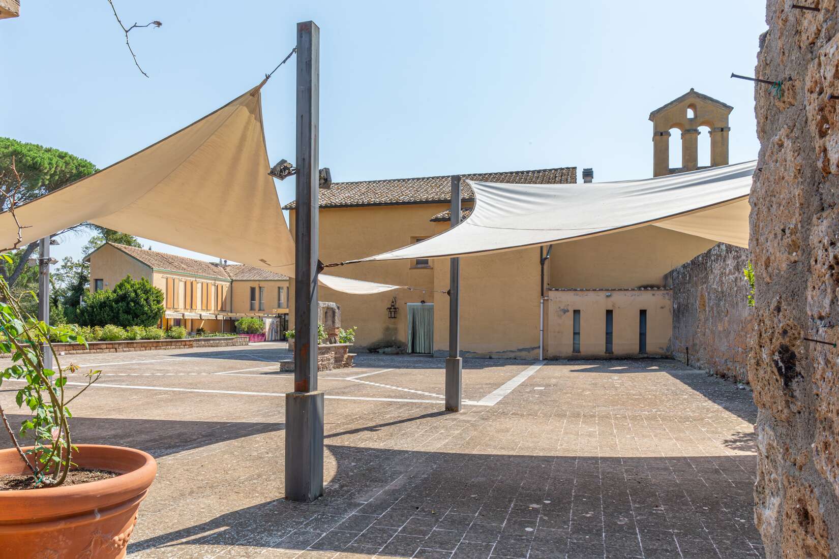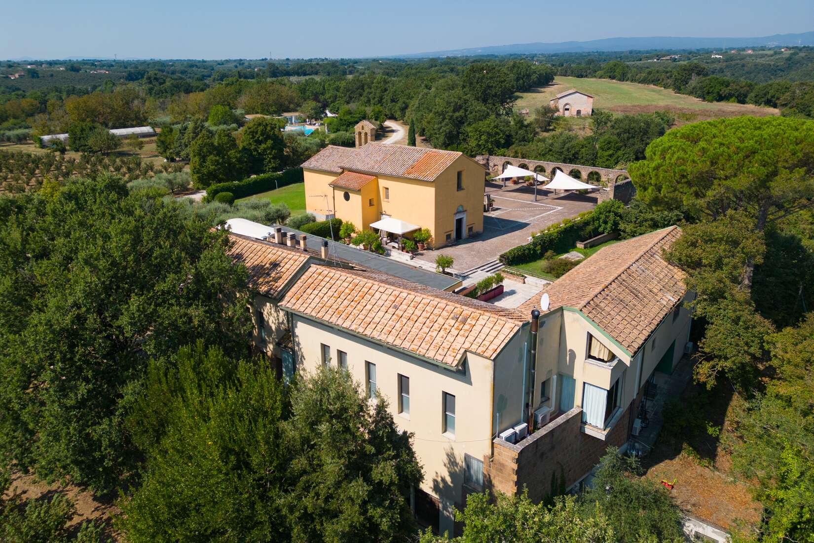 Country House Gallese is located on the site of an ancient convent. Today there are traces of the ancient walls, rich in history, a now deconsecrated 17th century church faced by the arches of the cloister and caves dating back to the Faliscan period. From here, surrounded by greenery, a splendid panorama extends over the surrounding landscape. A large space has been set up in the church, perfect for seminars, workshops, conferences or events. The villa houses seven bedrooms all with private bathroom and mezzanine, air conditioning and two independent apartments, a basement with apartment for the caretaker and utility rooms. A beautiful 4 ha garden, olive grove with 150 trees and orchard with 400 trees and a 10x20 m swimming pool with children's pool with bar, changing room and services.