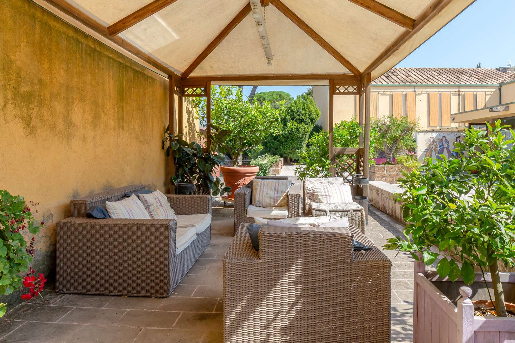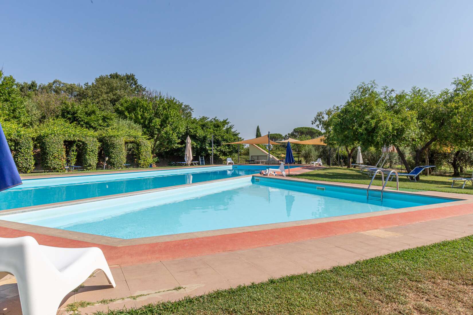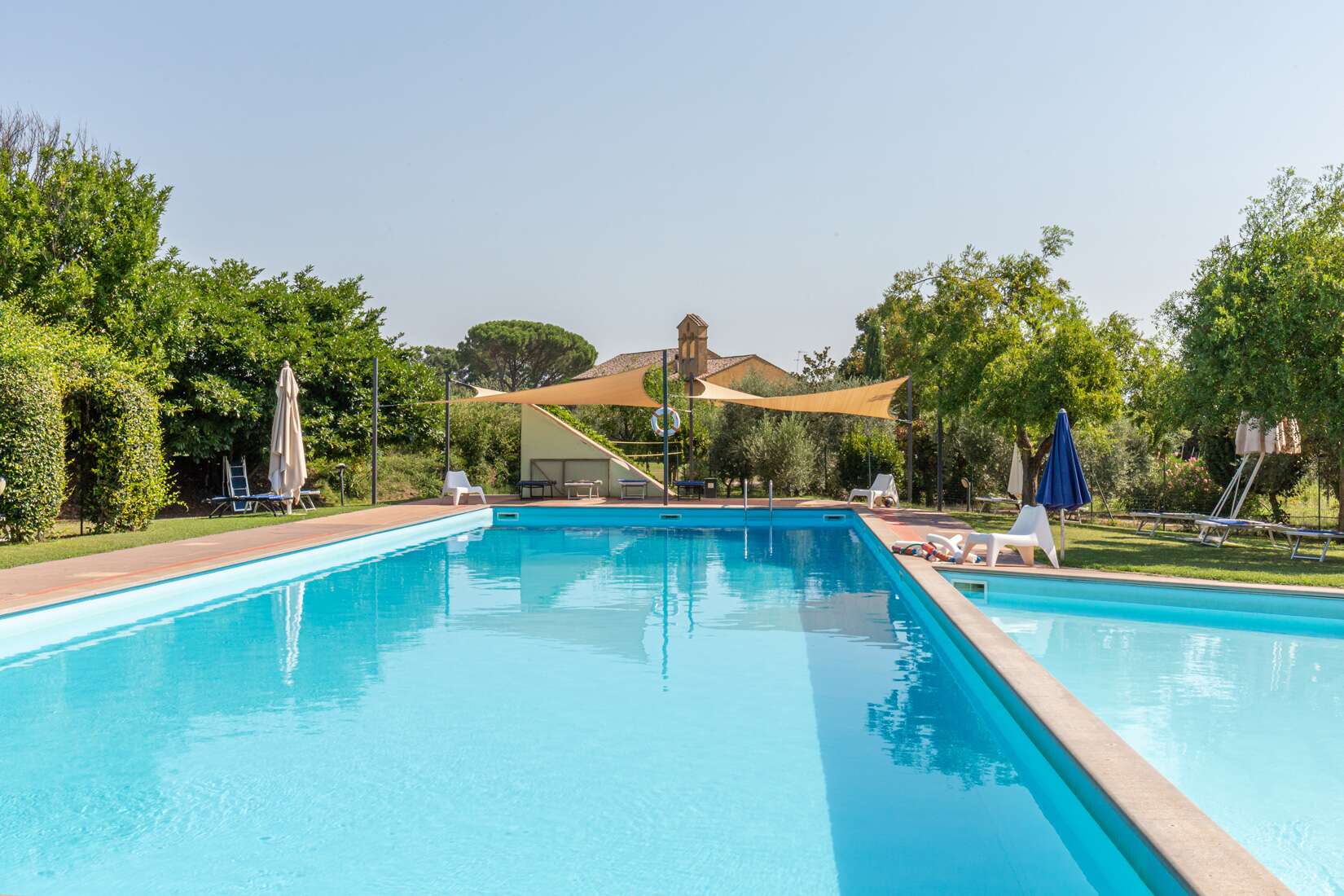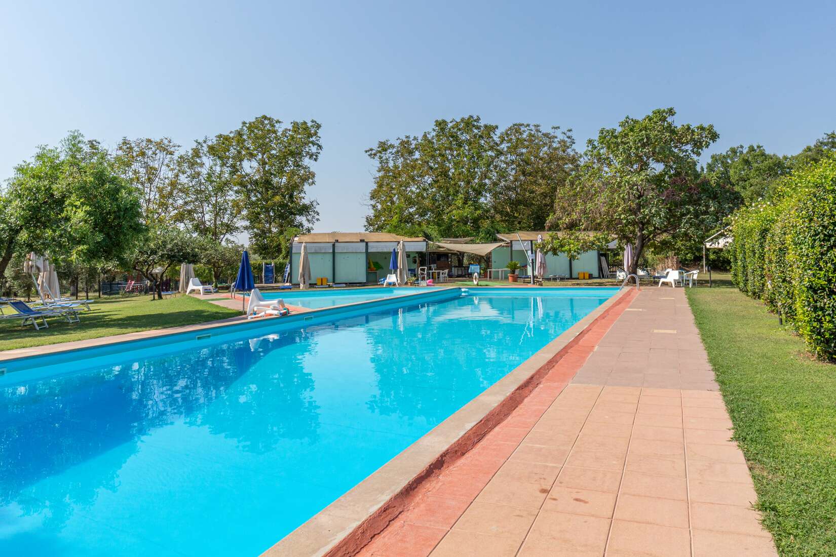 Country House Gallese is located on the site of an ancient convent. Today there are traces of the ancient walls, rich in history, a now deconsecrated 17th century church faced by the arches of the cloister and caves dating back to the Faliscan period. From here, surrounded by greenery, a splendid panorama extends over the surrounding landscape. A large space has been set up in the church, perfect for seminars, workshops, conferences or events. The villa houses seven bedrooms all with private bathroom and mezzanine, air conditioning and two independent apartments, a basement with apartment for the caretaker and utility rooms. A beautiful 4 ha garden, olive grove with 150 trees and orchard with 400 trees and a 10x20 m swimming pool with children's pool with bar, changing room and services.
