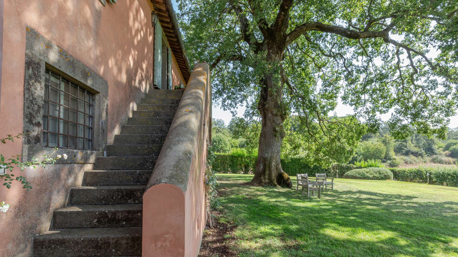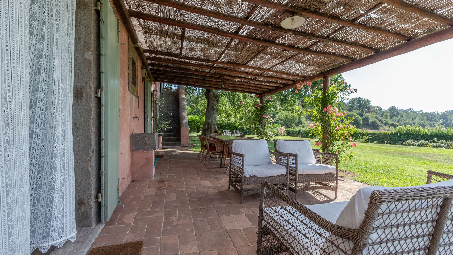 Located in the open countryside for full privacy, on the slopes of a mountain forest. There is an ancient Roman cobblestone road that winds through the woods, which requires a little patience but then takes you to a splendid oasis. Services: The closest town is Cura di Vetralla. It is just over 1 km away, with a train station only 10 minutes away. 15/20 km away, Lake Vico, Ronciglione, one of the most beautiful villages in Italy, and Viterbo with the thermal springs at the Terme dei Papi. For nature lovers, it is only 30 minutes to gardens and parks, such as Bomarzo, Vignanello, Villa Lante, Lake Bracciano. The beach of Tarquinia and Argentario as well as Lake Bolsena and Orvieto can be reached in 45 minutes. Rome and its various airports are just over 1 hour away.