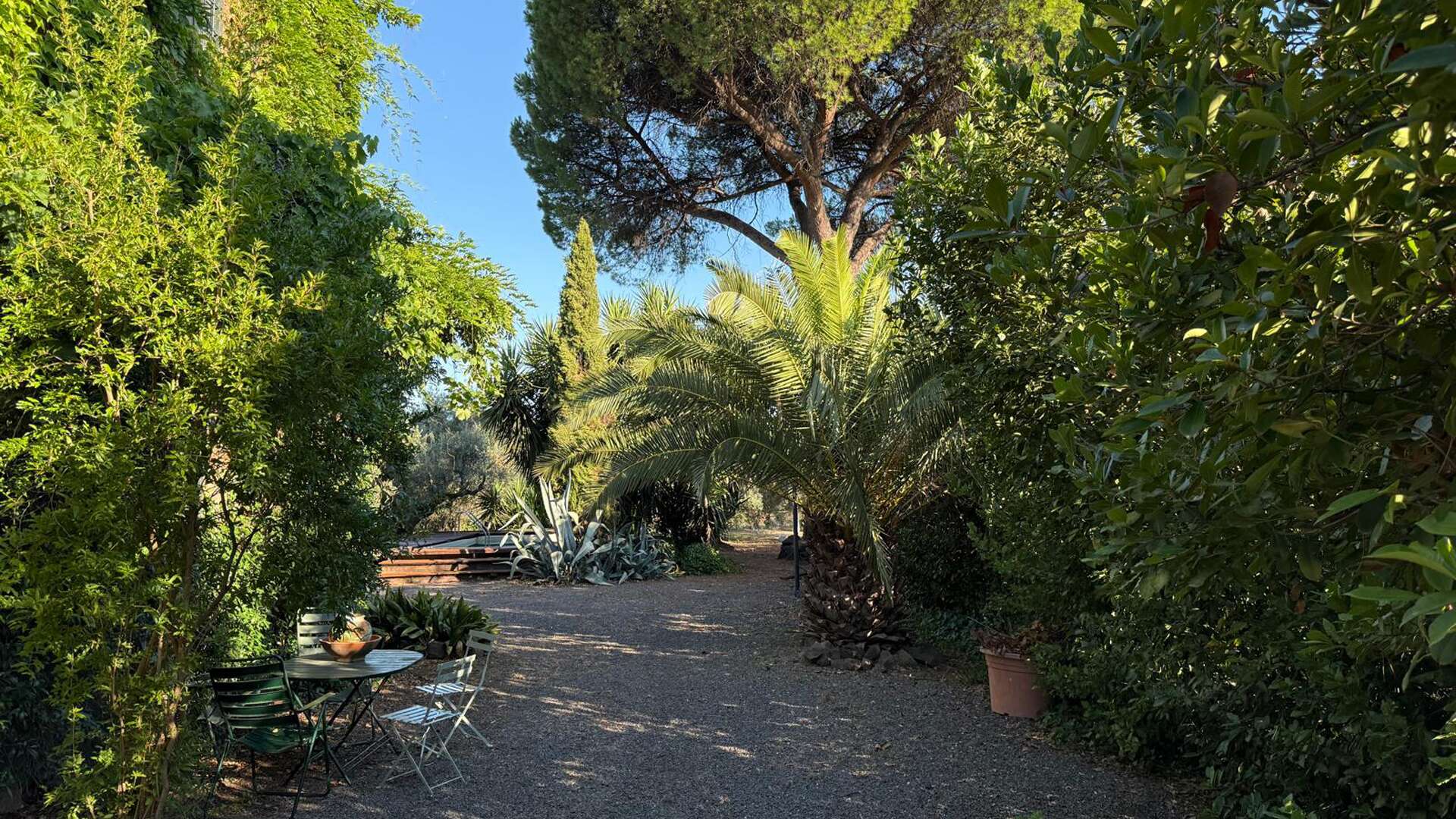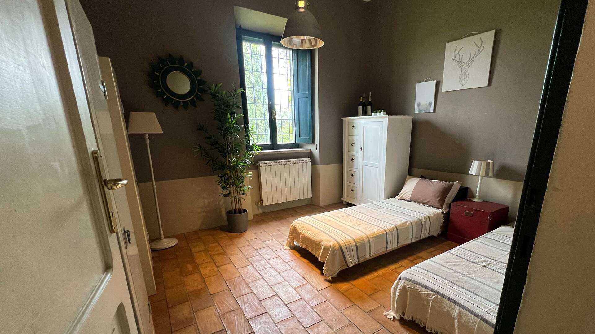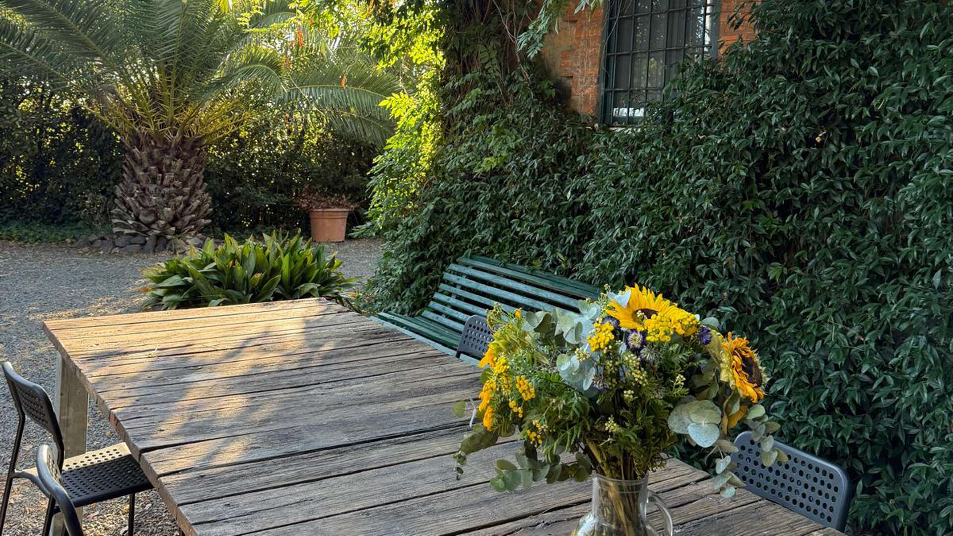 The stone and brick façades of the residence are adorned with climbing plants that transform the garden through the seasons: from blooming wisteria cascading along the walls to palms and yuccas that add a Mediterranean touch, as well as countless olive trees. This refined balance between nature and architecture makes the garden the beating heart of the property: a peaceful and beautiful retreat just minutes from the city but with the authentic soul of the countryside.
