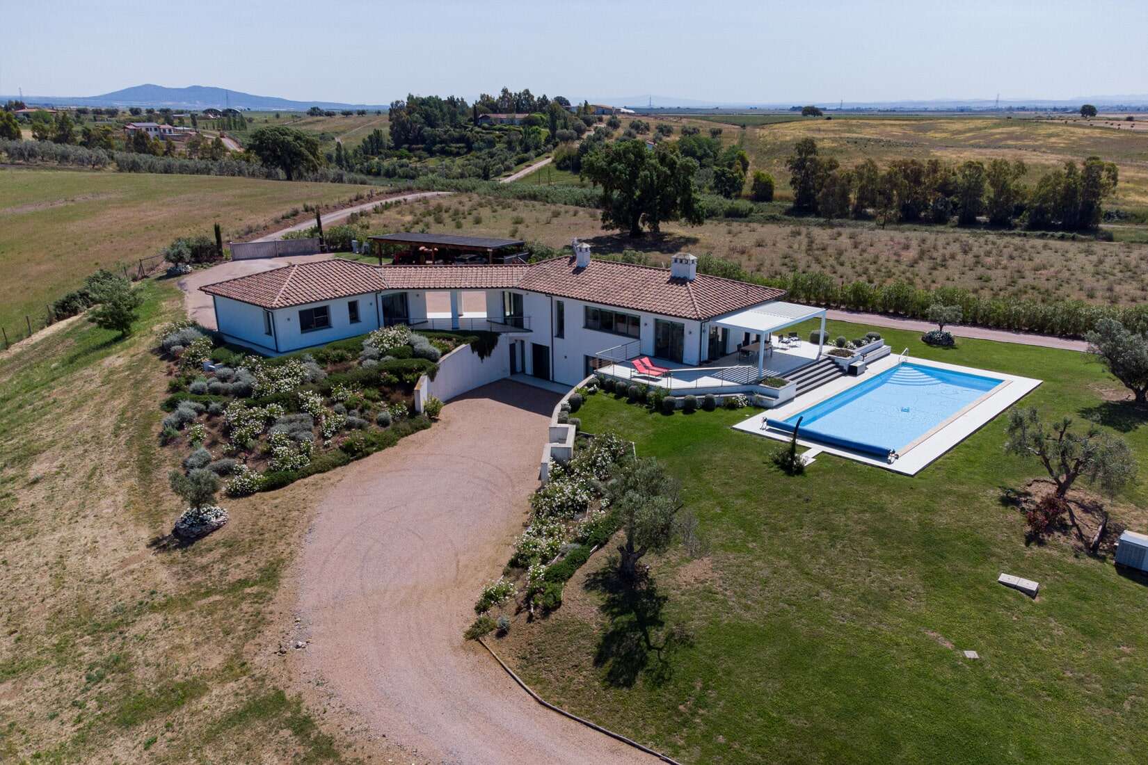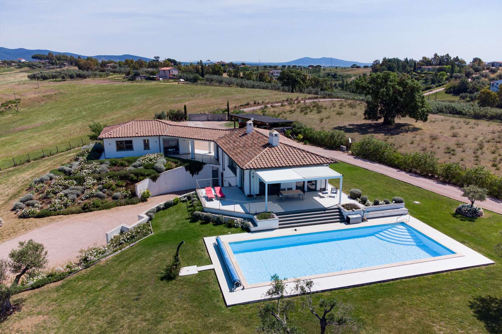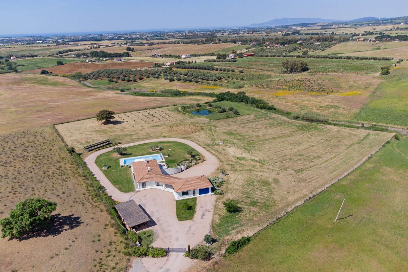 The villa is located in the municipality of Pescia Romana, part of the municipality of Montalto di Castro, on the border between Tuscany and Lazio, just 10 km from Capalbio and its beaches. Rome and its airports are only about 1 hour and 15 minutes by car.