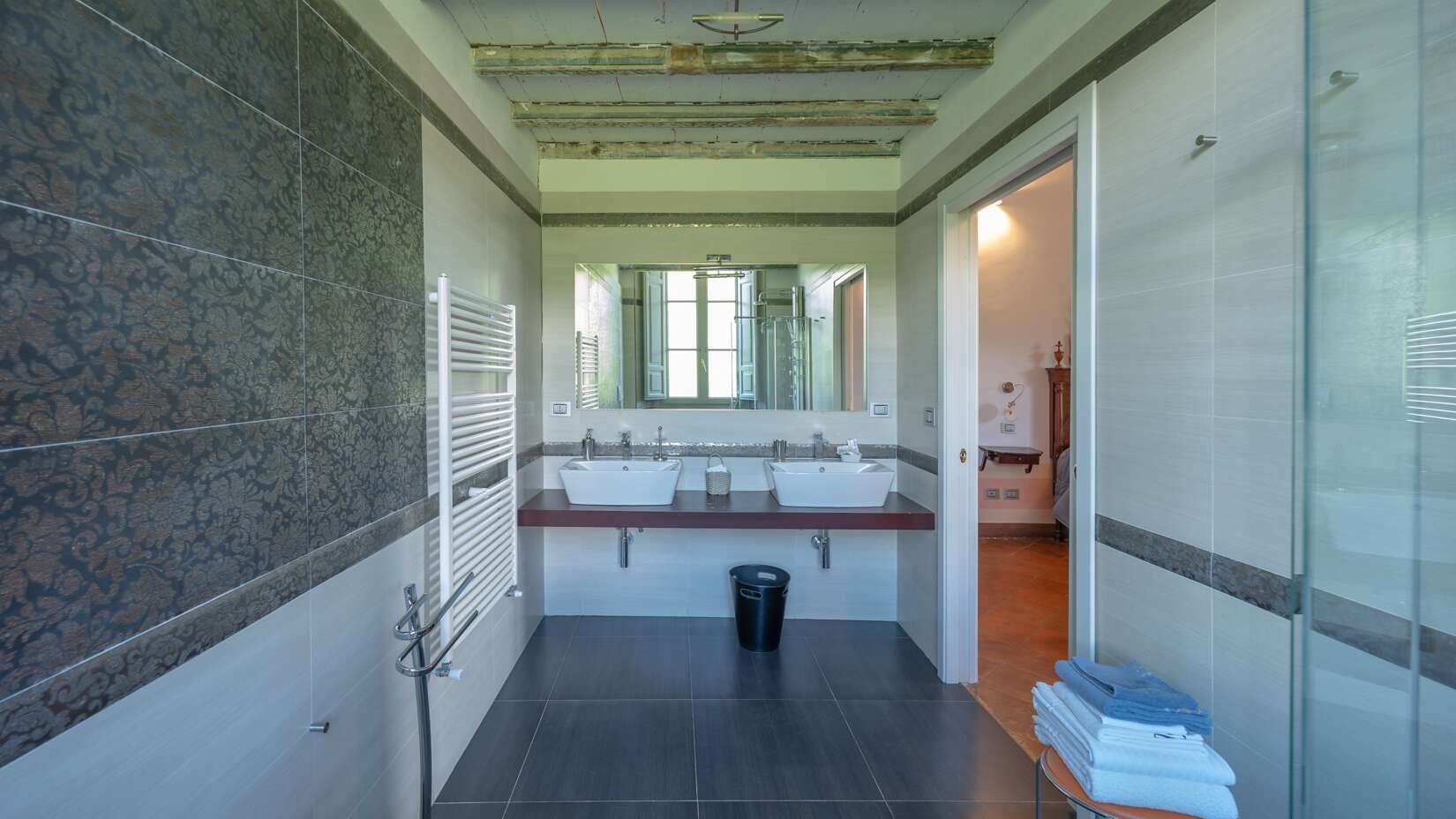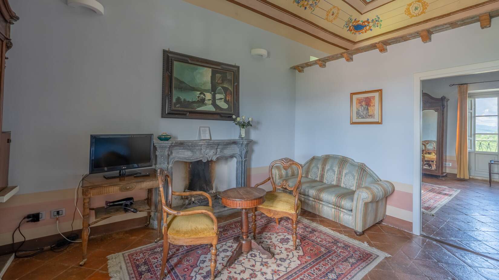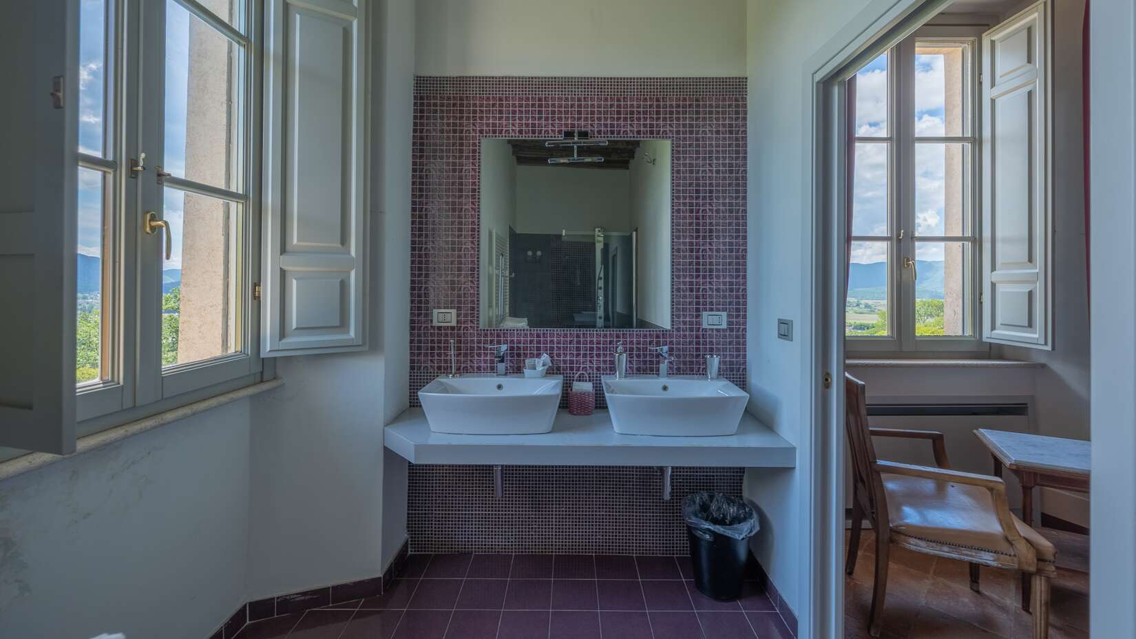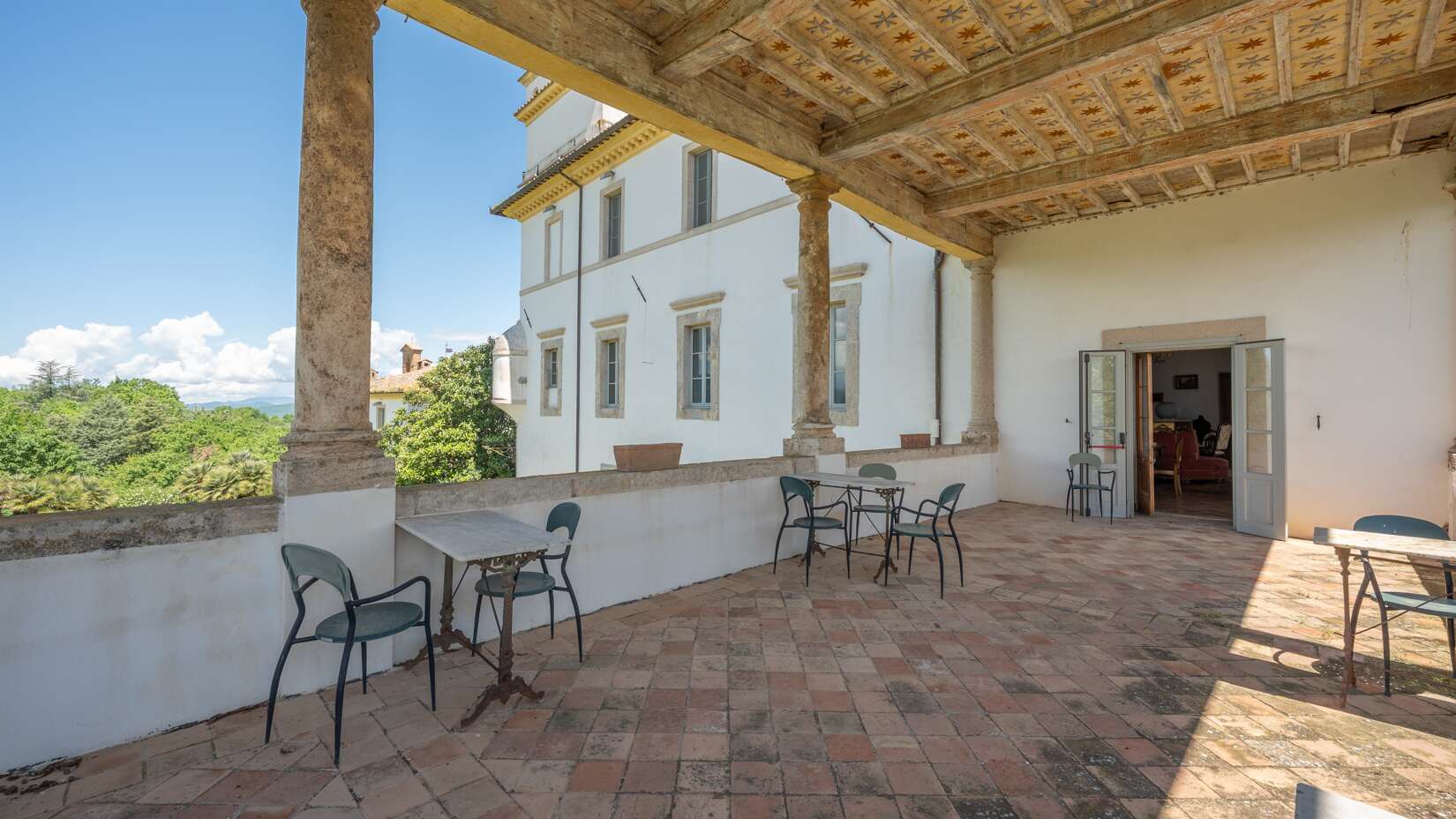 This extraordinary elegant villa awaits you in the heart of the marvellous Lazio countryside, in the town of Rieti, surrounded by a natural setting of rare beauty, where rolling hills merge with lush woods and green meadows. The property, restored with great attention, maintains intact the historical charm and elegance of the past, while offering the modern comforts necessary for a carefree and serene life. The villa was built in the 14th century and has a fascinating history that tells of ancient convents and noble families. The still present chapel and the turret give the property an ambiance of mystery and magic. The large green spaces and the privileged position make this place ideal for those seeking closeness and privacy, while enjoying the convenience of living just a few kilometres from Rieti, where you may find schools, markets, and all the necessary amenities. The garden, an oasis of peace, is an ideal place to enjoy the beauty of nature, with areas dedicated to relaxation and contemplation. The villa is surrounded by approximately 9 hectares of land, including farmland and splendid oak groves, offering a variety of opportunities for those who love contact with nature and outdoor life. The interior of the villa stands out for its refined finishes, high frescoed ceilings, and large, bright spaces, all designed to welcome guests in a sophisticated environment. Each room tells a story, the windows offer charming views of the surrounding hills. The shared areas include elegant lounges, ideal for entertaining, and terraces overlooking the wonderful panoramic views of the landscape, perfect for enjoying the sunset or hosting events. In addition to the bedrooms and spaces dedicated to relaxation, the villa offers potential as a hospitality facility, making it a unique opportunity for investors or those looking for a prestigious historic home. The road to reach this historic home is handy, with direct access from a paved road, and the proximity to important communication routes allows you to enjoy tranquillity without sacrificing comfort. This corner of paradise is an invitation to discover a way of life rich in history, beauty, and serenity.