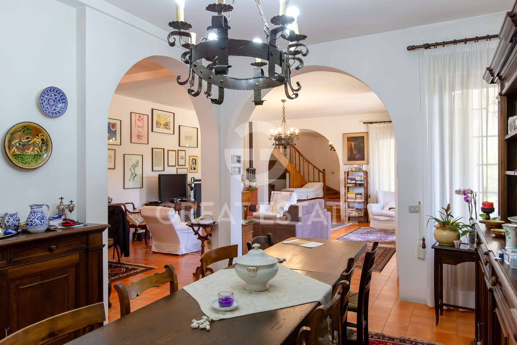 The surrounding landscape is characterized by gentle hills and an open view of the Tuscan countryside. The area is peaceful and offers excellent sun exposure, making it ideal for those seeking tranquility and comfort. The proximity to essential services makes this area even more appealing.