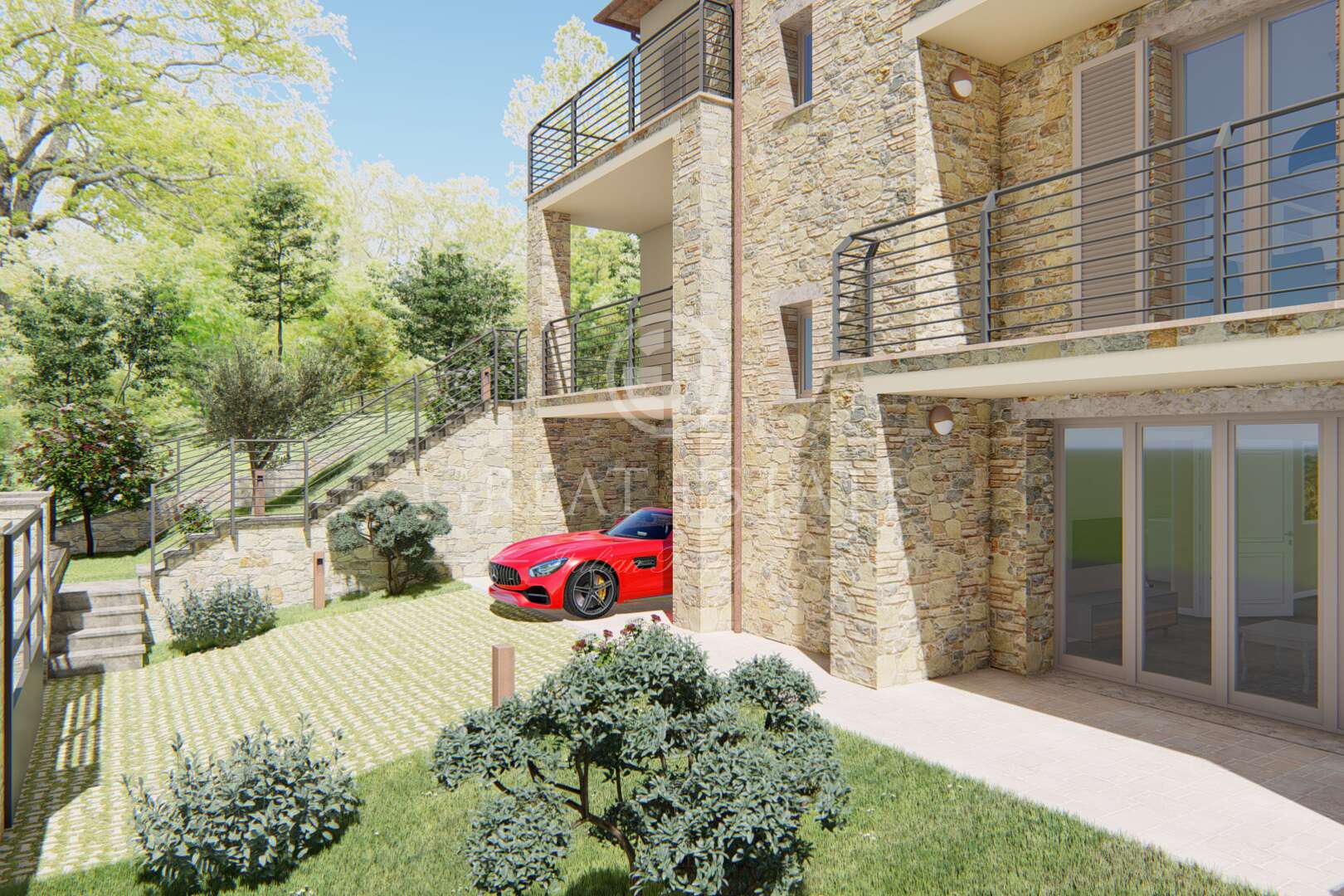 The estate will be realized through regular building permits and in accordance with it. The preliminary project exposed in this brochure could be revised and modified during the issue of the permit by the Municipality of San Casciano dei Bagni.