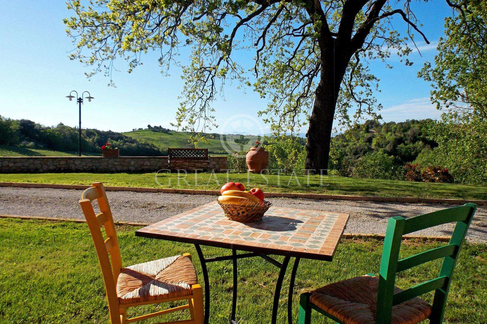 The two buildings are surrounded by about 20 hectares of land with vineyard, splendid olive grove, arable land and wood.