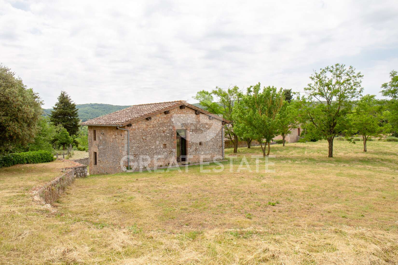 Exclusive property for sale in the municipality of Sovicille, in a quiet and panoramic position within the beautiful landscape of the Tuscan countryside. The property is composed of 3 residential units and a warehouse. The main building has a gross living area of approximately 724 sqm on three levels and is characterized by large common areas and spacious living areas. The ground floor consists of an entrance hall, dressing room, large multi-purpose area, kitchen with pantry, 2 workrooms, 2 bathrooms, 3 hallways, and a storage room. The first floor consists of 7 bedrooms, 5 bathrooms, 4 hallways, a storage room, and a living area. On the second floor, there are 2 bedrooms, a bathroom, a hallway, and a storage room. The first annex of about 153 square meters, is on one level and consists of a living room, kitchen with dining room, 2 bedrooms, 2 bathrooms, and a hallway. The second annex has a surface of about 70 sqm on two levels. A few steps from the house there is a warehouse of about 101 sqm.