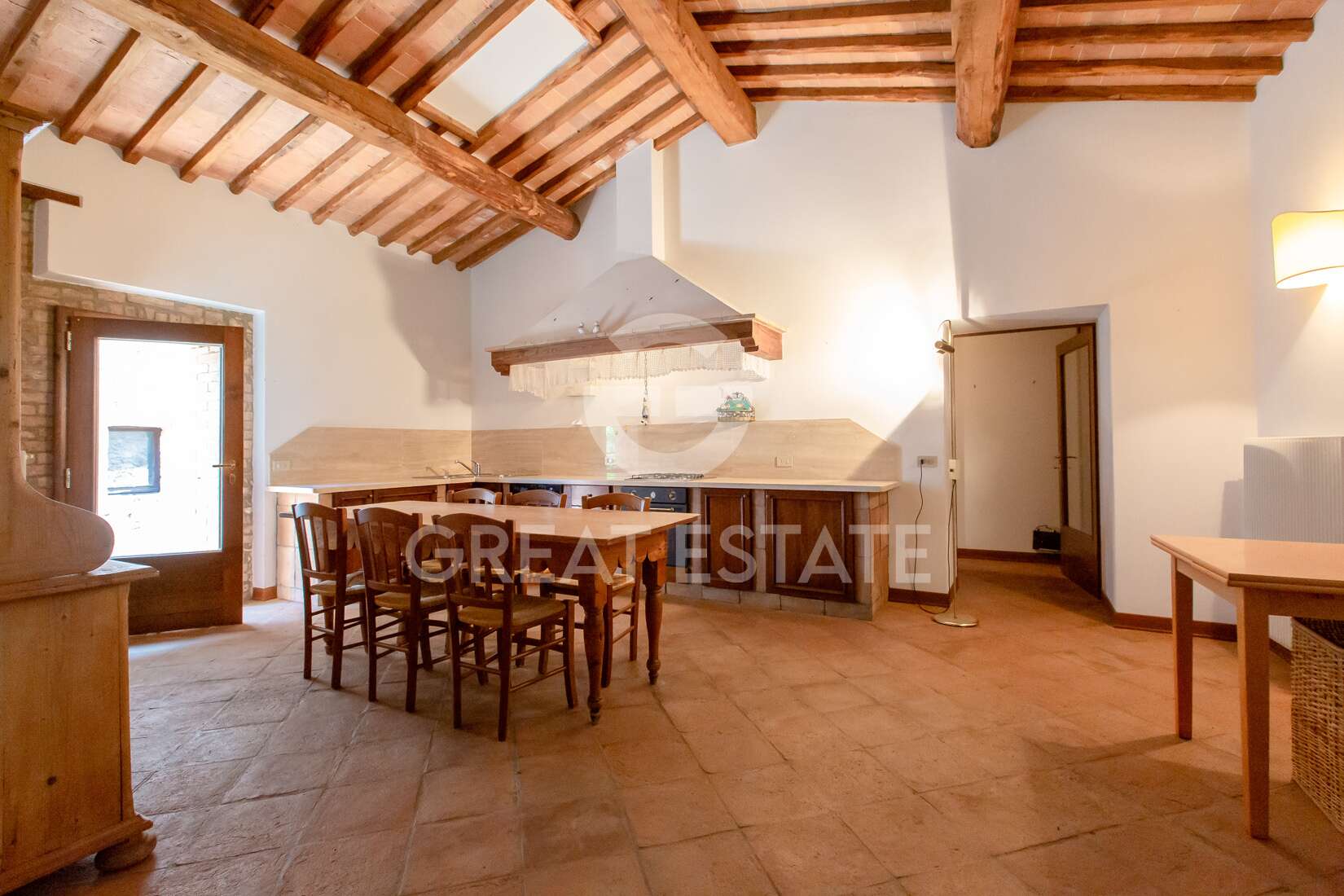 This charming restored farmhouse is located near Sovicille in a quiet and panoramic position, in a reserved but not isolated area. All necessary services can be found in the village Pievescola, a small hamlet in the municipality of Casole d'Elsa, only 3 km away by car. Places of interest such as the thermal baths of Petriolo and the famous Abbey of San Galgano can be reached in about 25km.