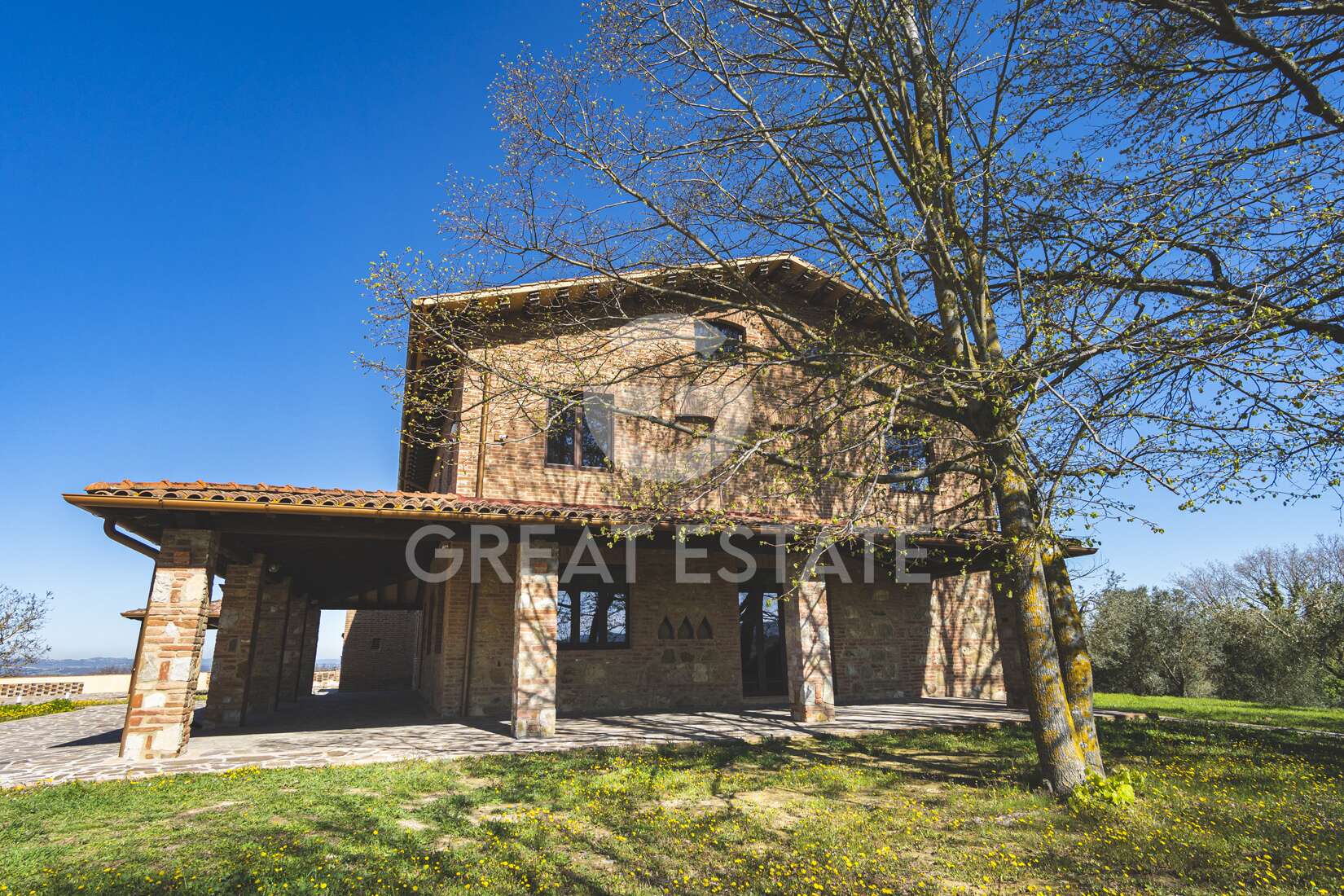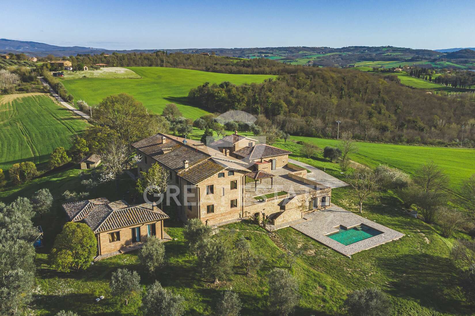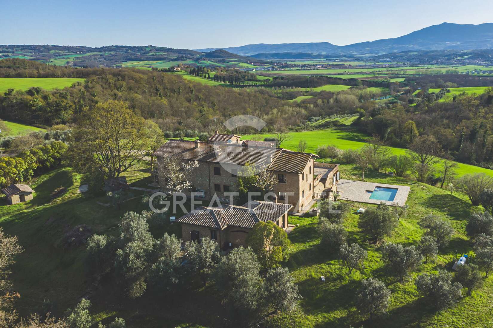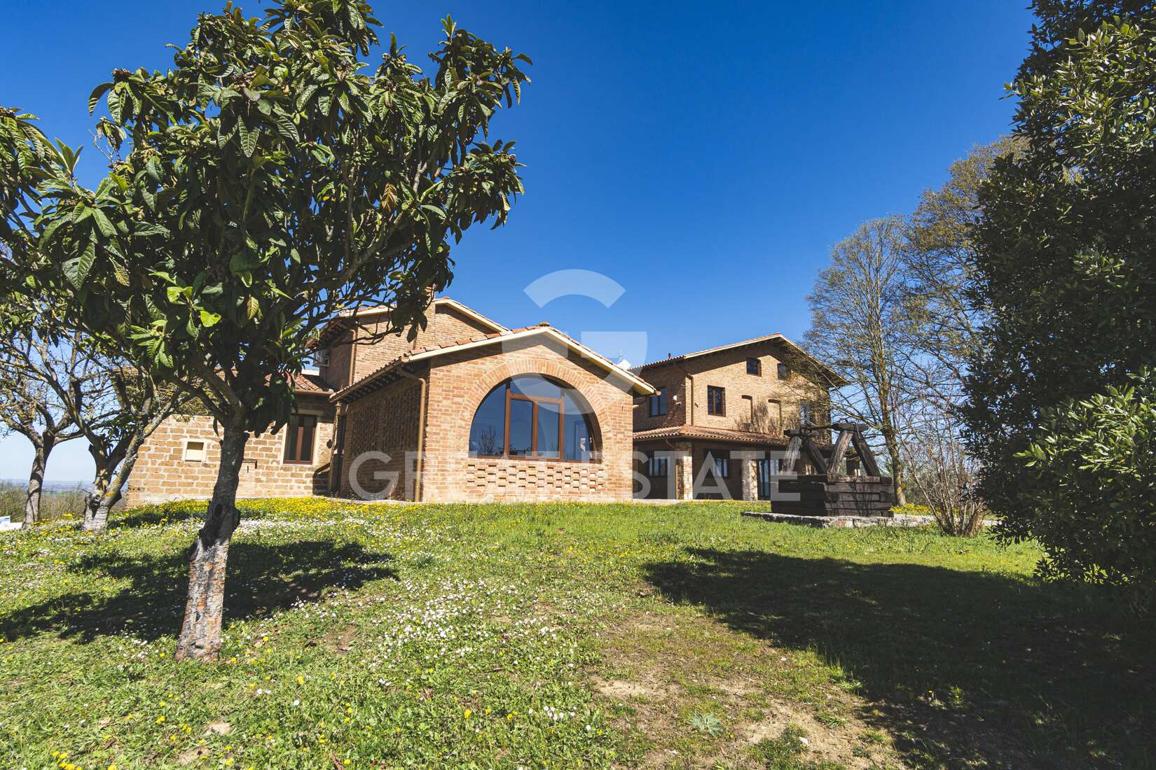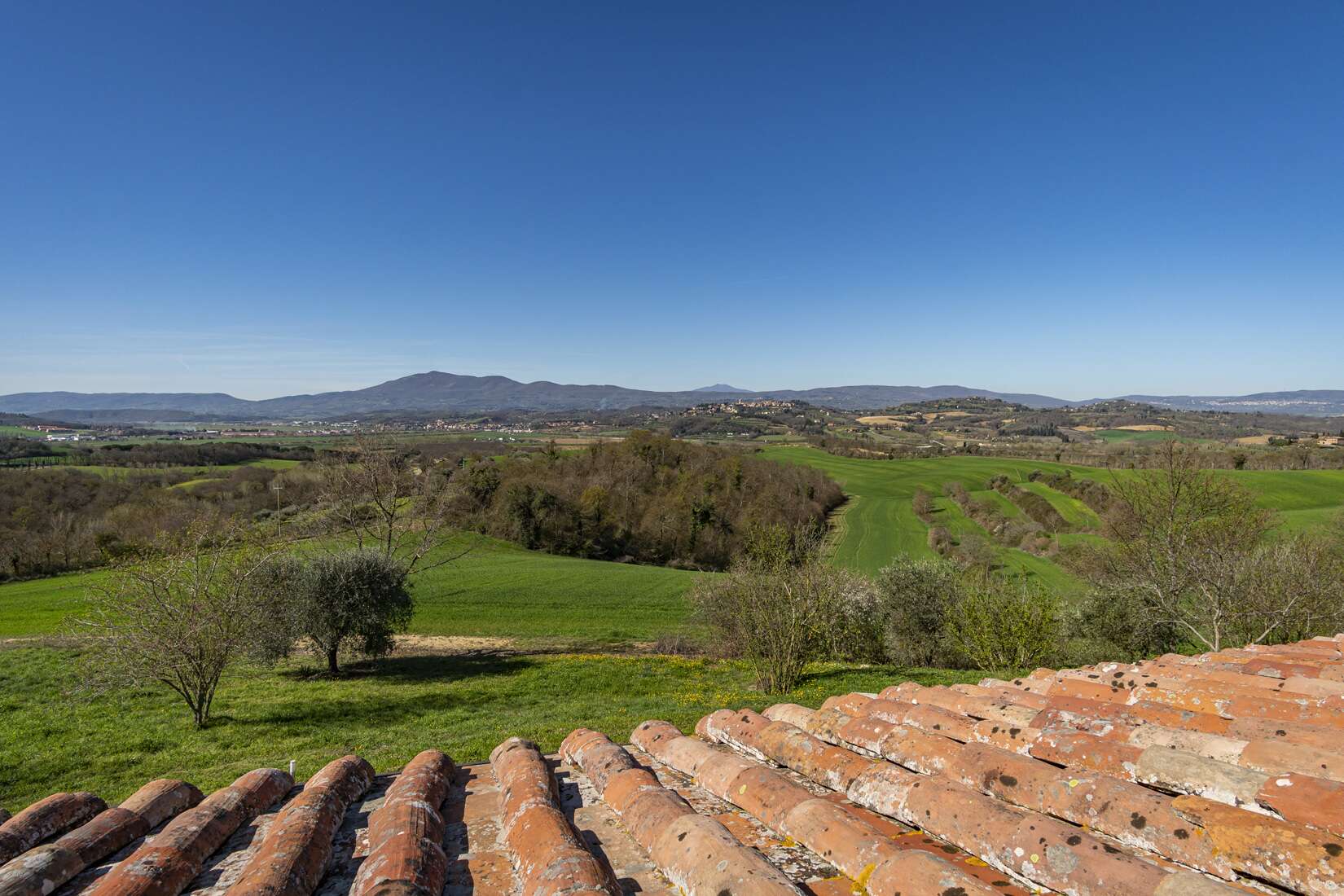 The farmhouse is located within a historic farm and hunting wildlife, on the border between Umbria and Tuscany. The property is located a few kilometres from Chiusi, Città della Pieve and Castiglione del Lago. Surrounded by woods, cultivated fields and olive groves with very suggestive views, the property can be reached after 3 km of perfectly maintained dirt road. The nearest village with services is 3 km away. The property is located halfway between Rome (150 km) and Florence (120 km), with the great advantage of being easily reachable by the A1 Florence-Rome motorway using the Chiusi-Chianciano Terme or Fabro exits, from which it is respectively 10 km and 20 km or by train using the nearby Chiusi-Chianciano Terme railway station.