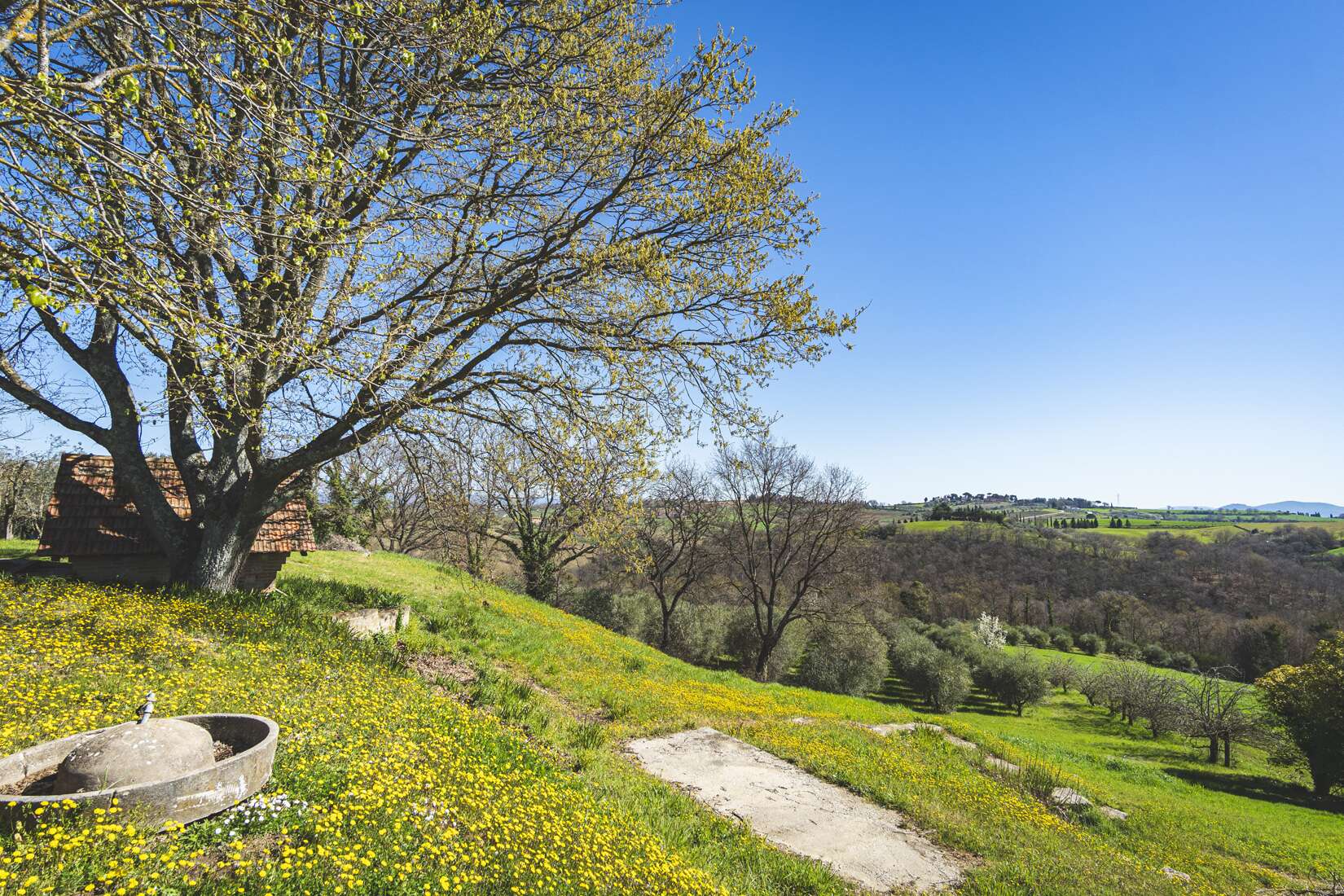 Surrounding agricultural land of 11.3 hectares, partly cultivated with olive groves (1.8 hectares with 500 plants in production) and partly with woods (9.5 hectares).