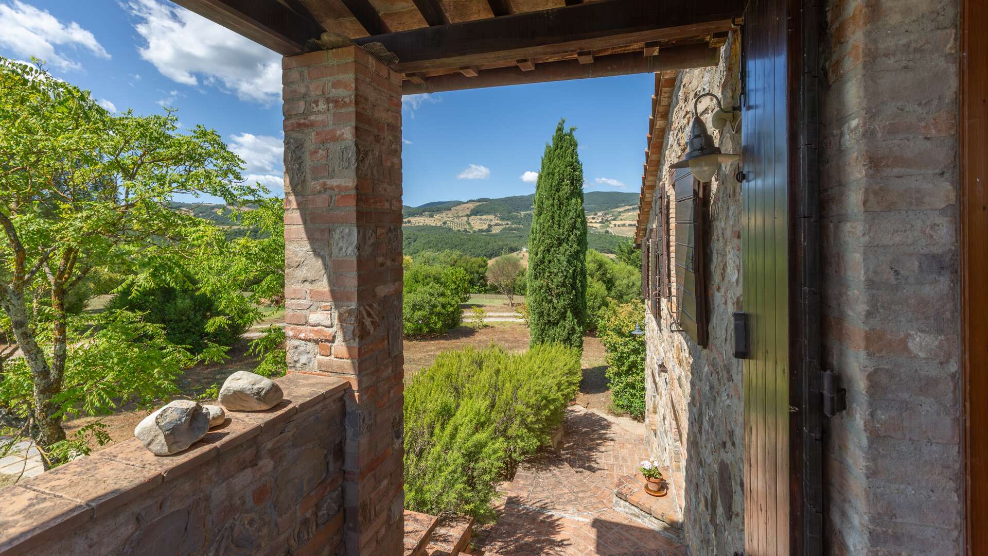 Set in an authentic Umbrian countryside setting, this enchanting old farmhouse offers breathtaking panoramic views and is surrounded by olive groves, making it an ideal retreat nestled in the rolling hills of Umbria.